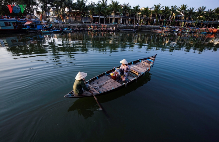 Dòng sông lặng như 1 tấm gương để đôi bờ soi bóng, rọi tỏ không gian cổ kính, rêu phong của khu phố cổ Hội An nhuốm màu thời gian. Chỉ một lần đến Hội An cũng sẽ bị đô thị cổ nhỏ bé và êm đềm này quyến rũ, chinh phục |