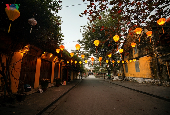 Thử đến Hội An bạn sẽ cảm thấy thích thú với buổi sớm mai trễ nải. Không ồn ào tấp tập, không tiếng kẽo kẹt của gánh hàng rong qua từng con phố nhỏ... Trong ảnh: Trời hửng sáng, con phố Châu Thượng Văn vẫn im lìm ngủ trong ngày đầu năm mới. |