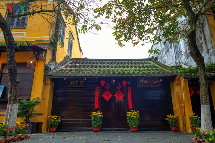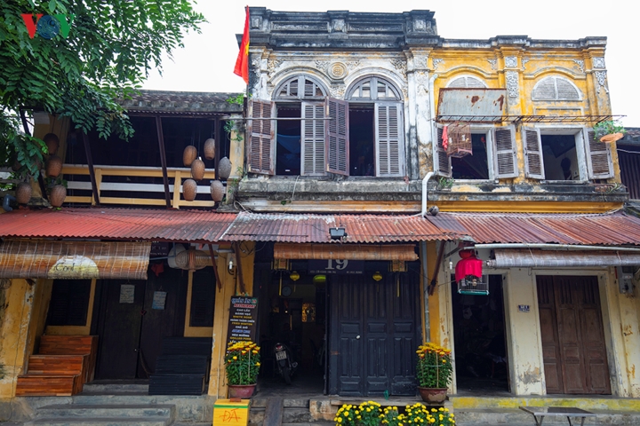 Những ngôi nhà cổ vẫn đóng cửa. Dễ nhận ra kiểu trang trí bên ngoài đặc trưng của những ngô nhà trong phố cổ. |