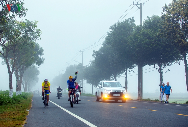 Con đường ngoại ô phủ dày sương sớm. Cảm giác được thả hồn vào thiên nhiên, hít hà cái không khi mát mẻ, trong lành khó ai có thể cưỡng lại được. |