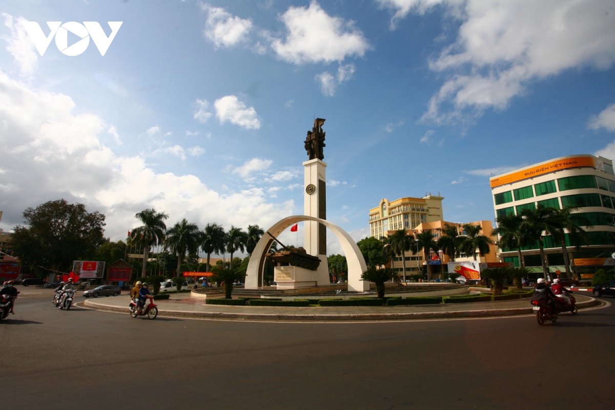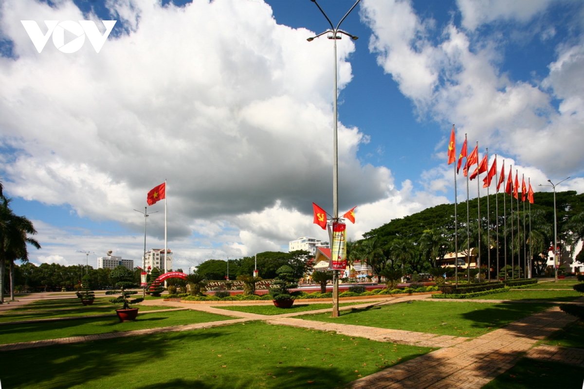 | TP.Buôn Ma Thuột được thành lập năm 1995, hiện nay là đô thị loại 1. Đây là thành phố lớn nhất ở vùng Tây Nguyên và là đô thị miền núi có dân số lớn nhất Việt Nam. Thành phố thoáng rộng với nhiều cây xanh và công viên, chưa có nhiều nhà cao tầng. Ảnh: Quảng trường thành phố với mặt chính ở đường Nguyễn Tất Thành. |
