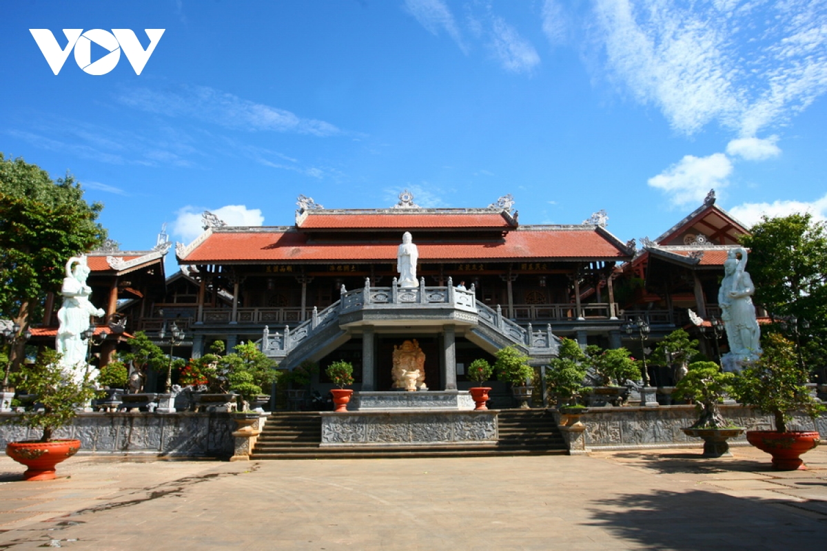 | Nằm trên đường Quang Trung, chùa Khải Đoan là một công trình kiến trúc Phật giáo có quy mô lớn và đặc sắc của thành phố. Chùa Khải Đoan là ngôi chùa Phật giáo đầu tiên ở Tây Nguyên, được xây dựng từ năm 1951. Chùa do Đoan Huy hoàng thái hậu - mẹ vua Bảo Đại cho xây dựng và thứ phi Mộng Điệp trực tiếp chịu trách nhiệm quản lý việc thi công. Tên chùa Khải Đoan được ghép từ tên vua Khải Định và vợ là Đoan Huy hoàng hậu. Kiến trúc chùa hiện nay được trùng tu, xây mới bổ sung một số hạng mục qua nhiều thời kỳ nhưng vẫn giữ được phong cách chung trong tổng thể kiến trúc. |