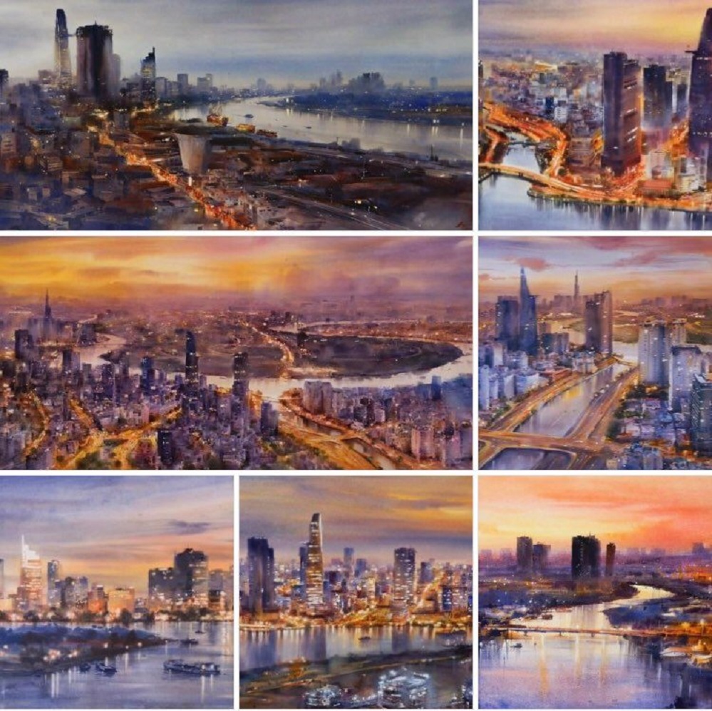 Thành phố Hồ Chí Minh trở về "bình thường mới". Tranh màu nước của Đoàn Cao Quốc |