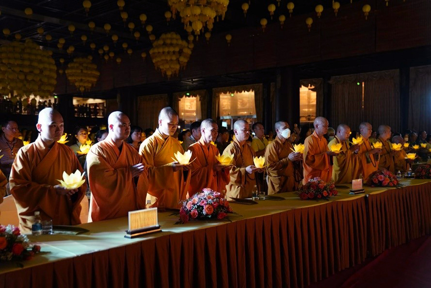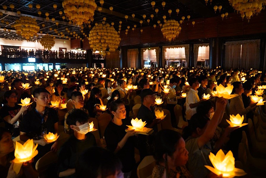Tối 6/8 (tức 9/7 Âm lịch), tại tỉnh Hà Nam, Ban trụ trì chùa Tam Chúc tổ chức lễ Vu lan báo hiếu dưới sự chủ trì, tham dự của Thượng tọa Thích Minh Quang, Ủy viên Hội đồng trị sự Giáo hội Phật giáo Việt Nam, Phó trụ trì chùa Tam Chúc cùng đông đảo đại biểu và hàng nghìn tăng ni, phật tử về tham dự. Ảnh: Chùa Tam Chúc |