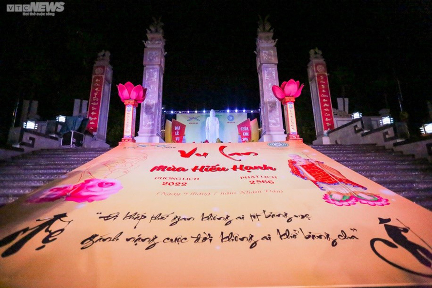 Đêm 6/8 (9/7 âm lịch), tại chùa Kim Sơn - Công viên tâm linh Lạc Hồng Viên (xã Dân Hòa, Kỳ Sơn, Hòa Bình), Đại lễ Vu Lan diễn ra với sự tham dự của hàng nghìn phật tử, người dân địa phương. Ảnh: VTC |