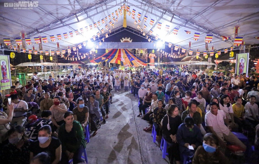 Hàng nghìn tăng ni, phật tử và người dân địa phương đã đến đây từ rất sớm để cầu nguyện, thắp nén hương bày tỏ lòng thành kính, cũng như tham dự lễ Vu Lan báo hiếu. Ảnh: VTC |