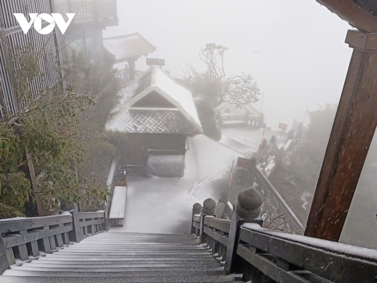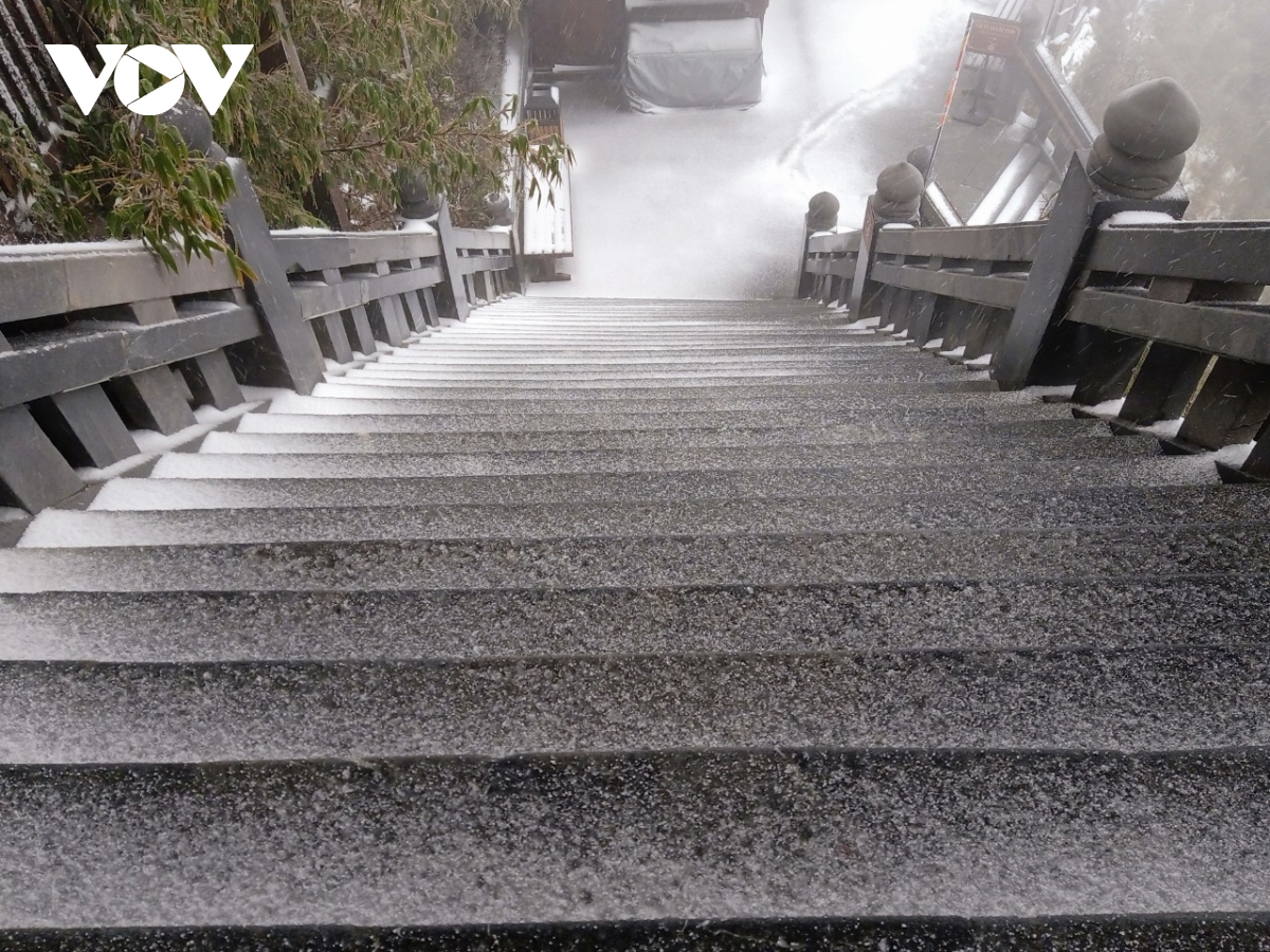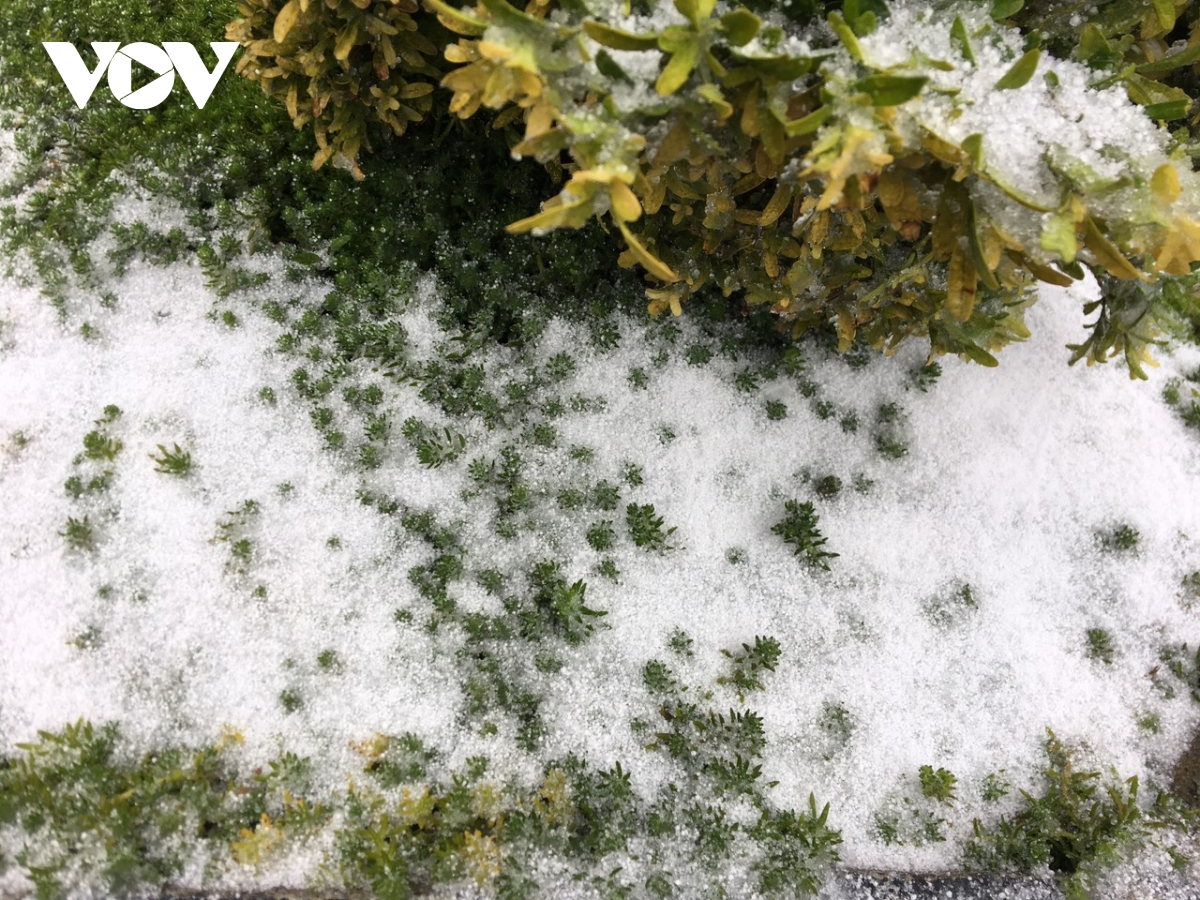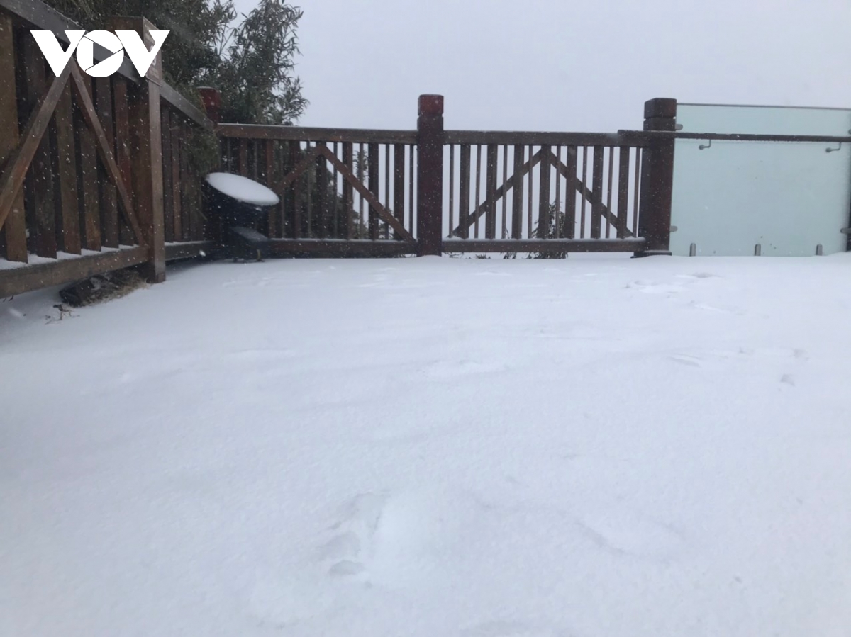 Cường độ tuyết rơi khá mạnh, chỉ sau vài giờ đồng hồ, tới trưa 8/2, tuyết đã phủ dày khoảng 2-3cm trên các bề mặt, tạo nên khung cảnh trắng xóa, tuyệt đẹp quanh “nóc nhà Đông Dương”.
