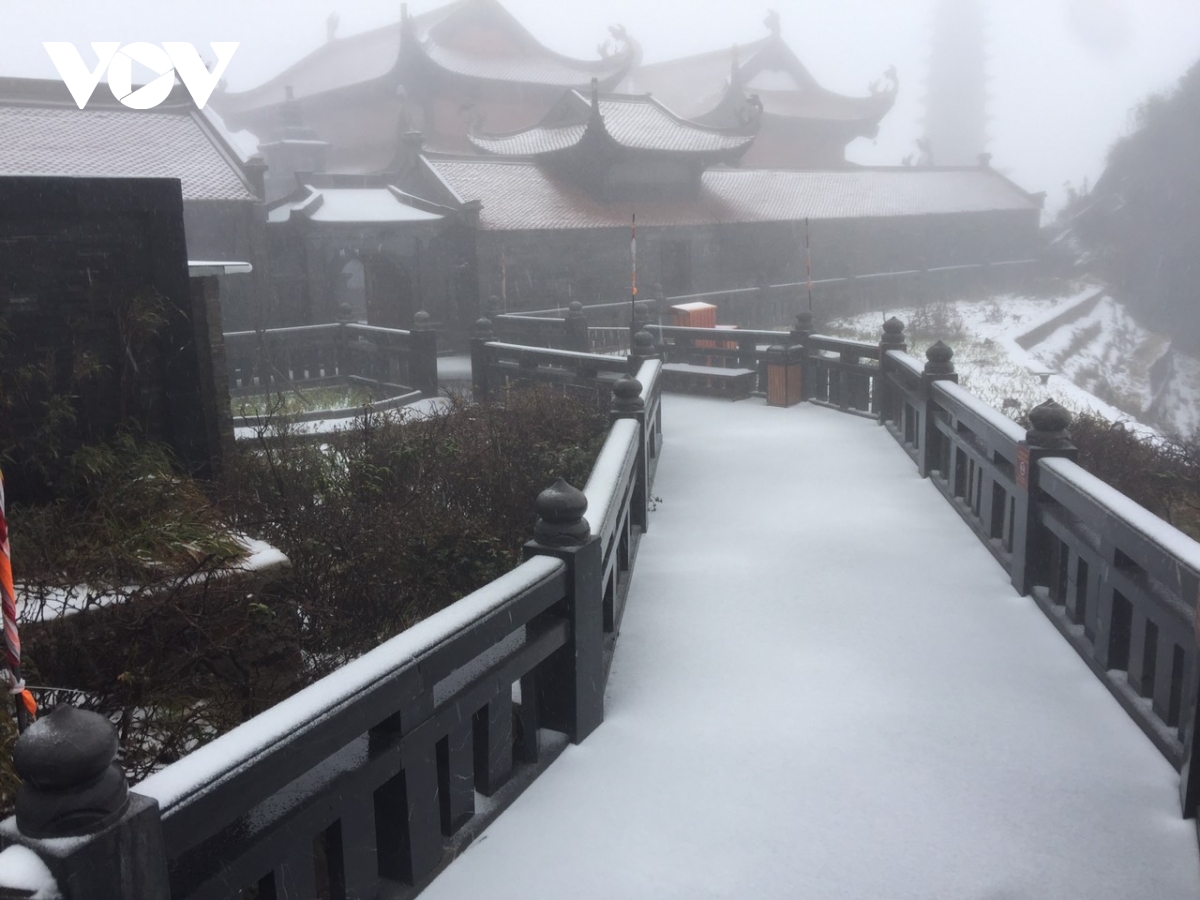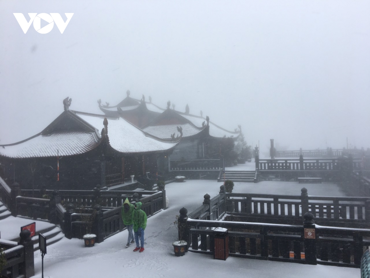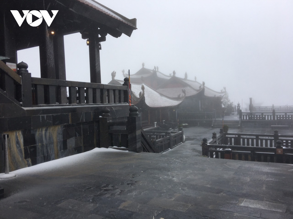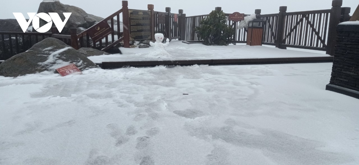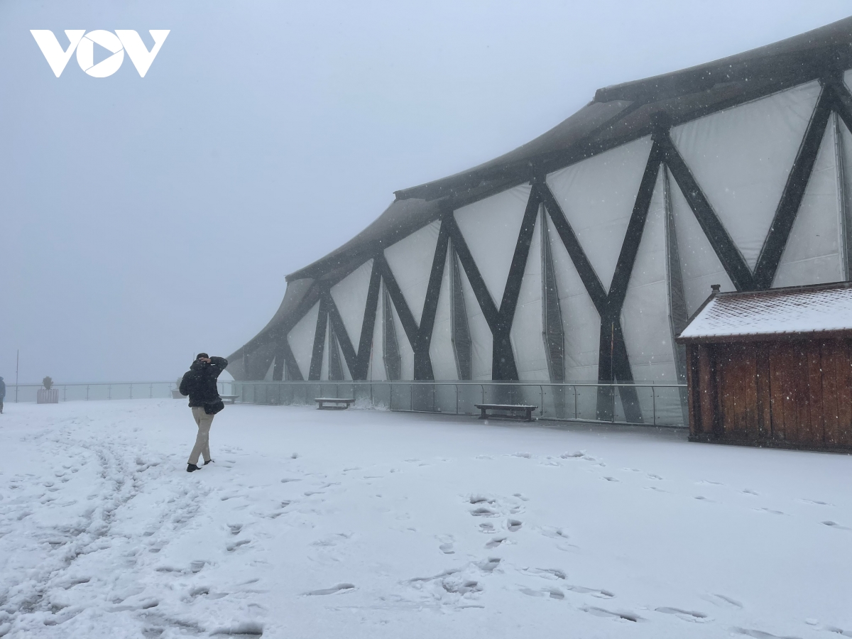 Cường độ tuyết rơi khá mạnh, chỉ sau vài giờ đồng hồ, tới trưa 8/2, tuyết đã phủ dày khoảng 2-3cm trên các bề mặt, tạo nên khung cảnh trắng xóa, tuyệt đẹp quanh “nóc nhà Đông Dương”.