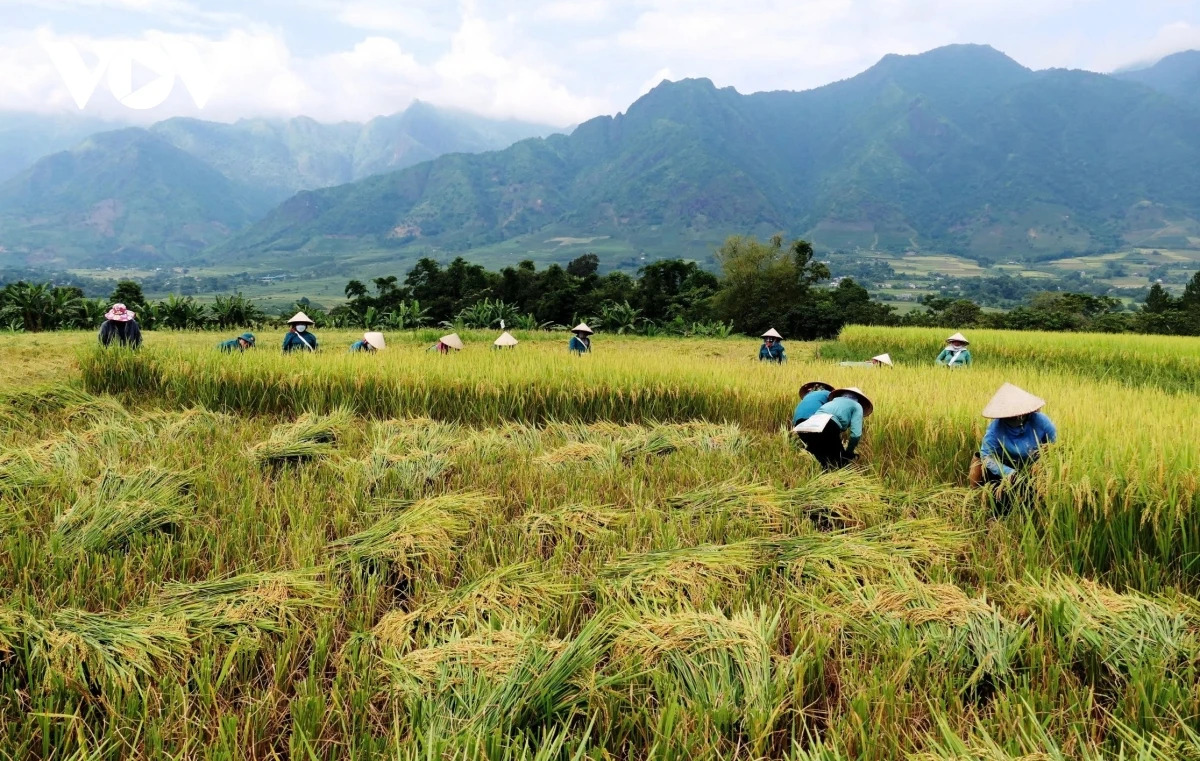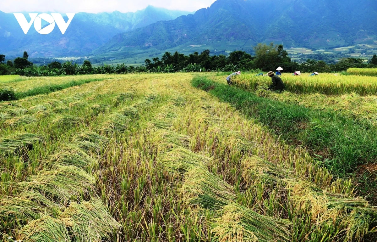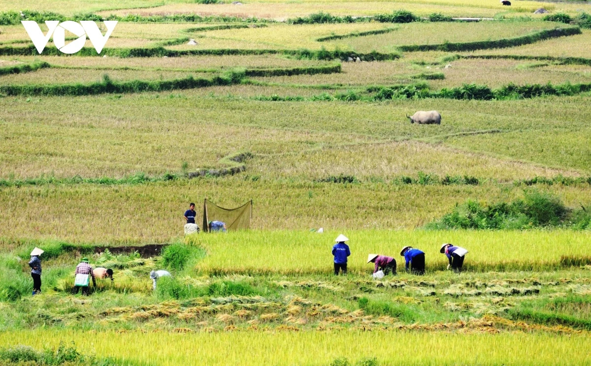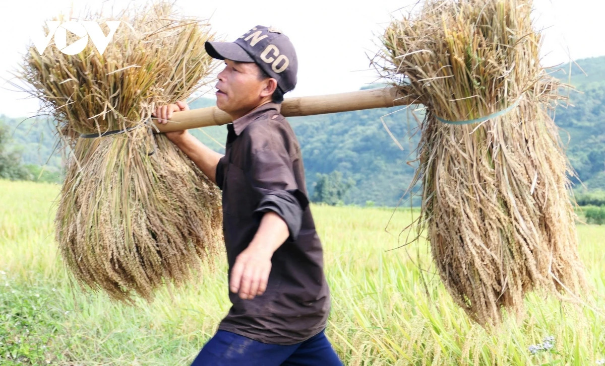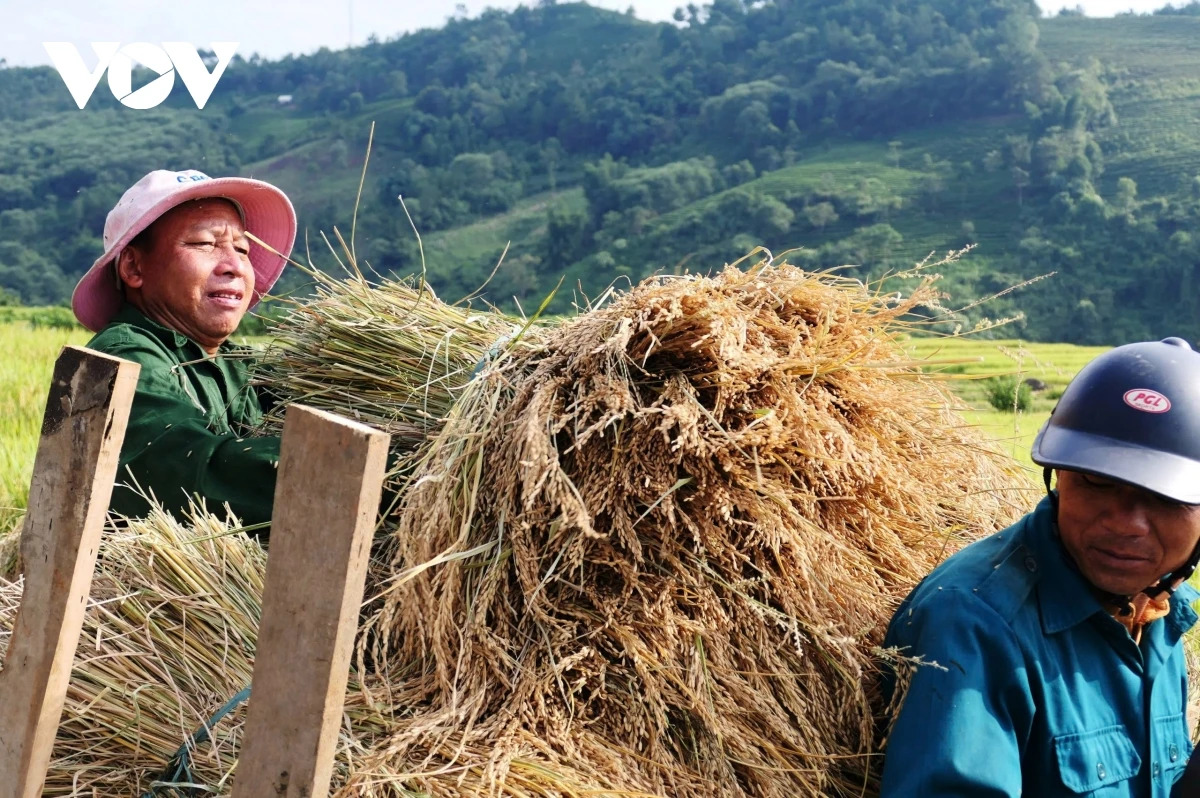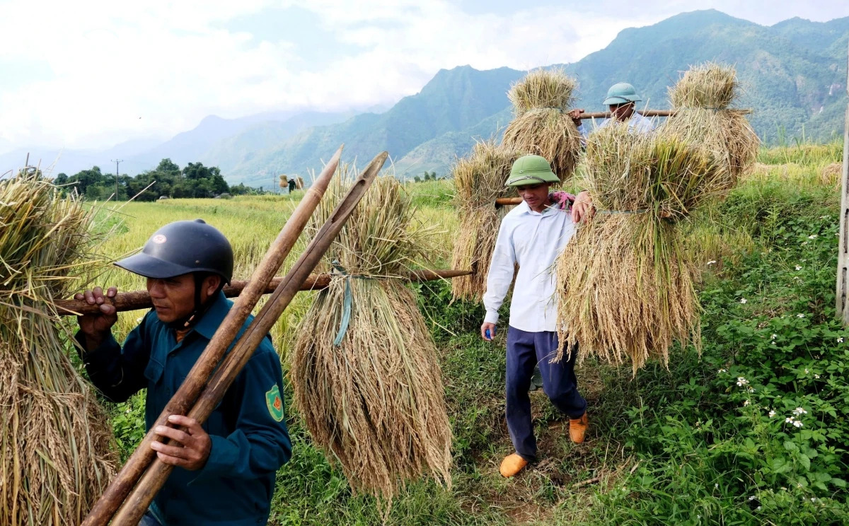 Sau hội cốm, bà con nông dân từ vùng cao xuống vùng thấp bắt đầu xuống đồng thu hoạch.