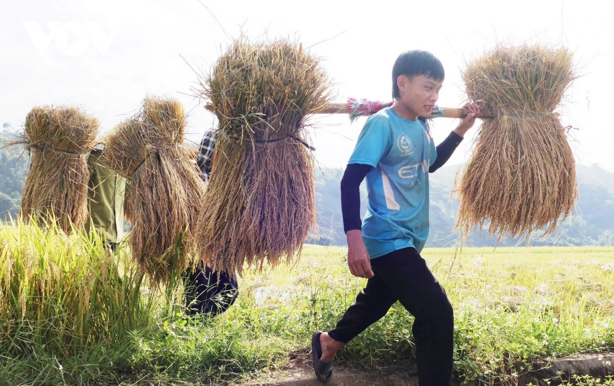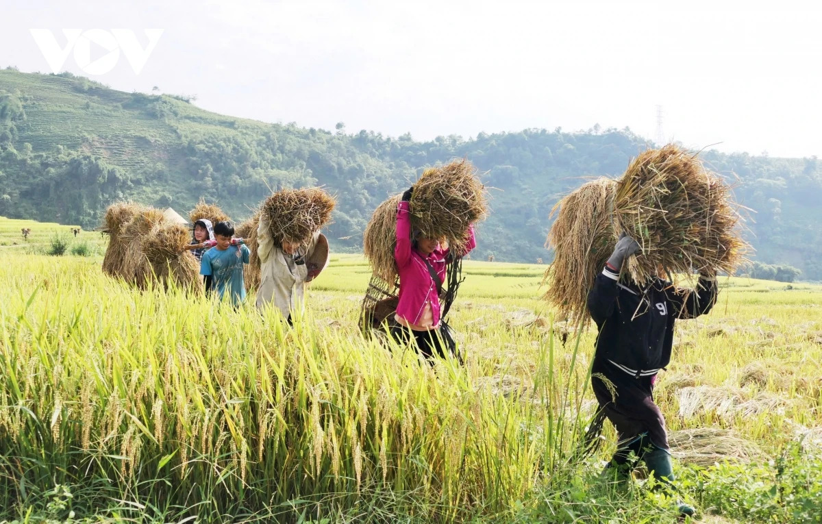 Đồng bào các dân tộc thiểu số ở khắp các bản làng lại rộn ràng xuống đồng thu hoạch những “hạt vàng” trong niềm vui hân hoan ngày mùa.