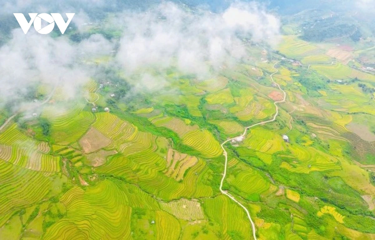 Những áng mây lững lờ trôi bên những cung đường uốn lượn như dải lụa tạo lên bức tranh thu đậm chất vùng cao.