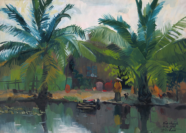 Cảnh Bình Chánh, bột màu/giấy báo, kích thước 40 x 57cm. Hiện là sưu tập của ông Lê Hải Đức.