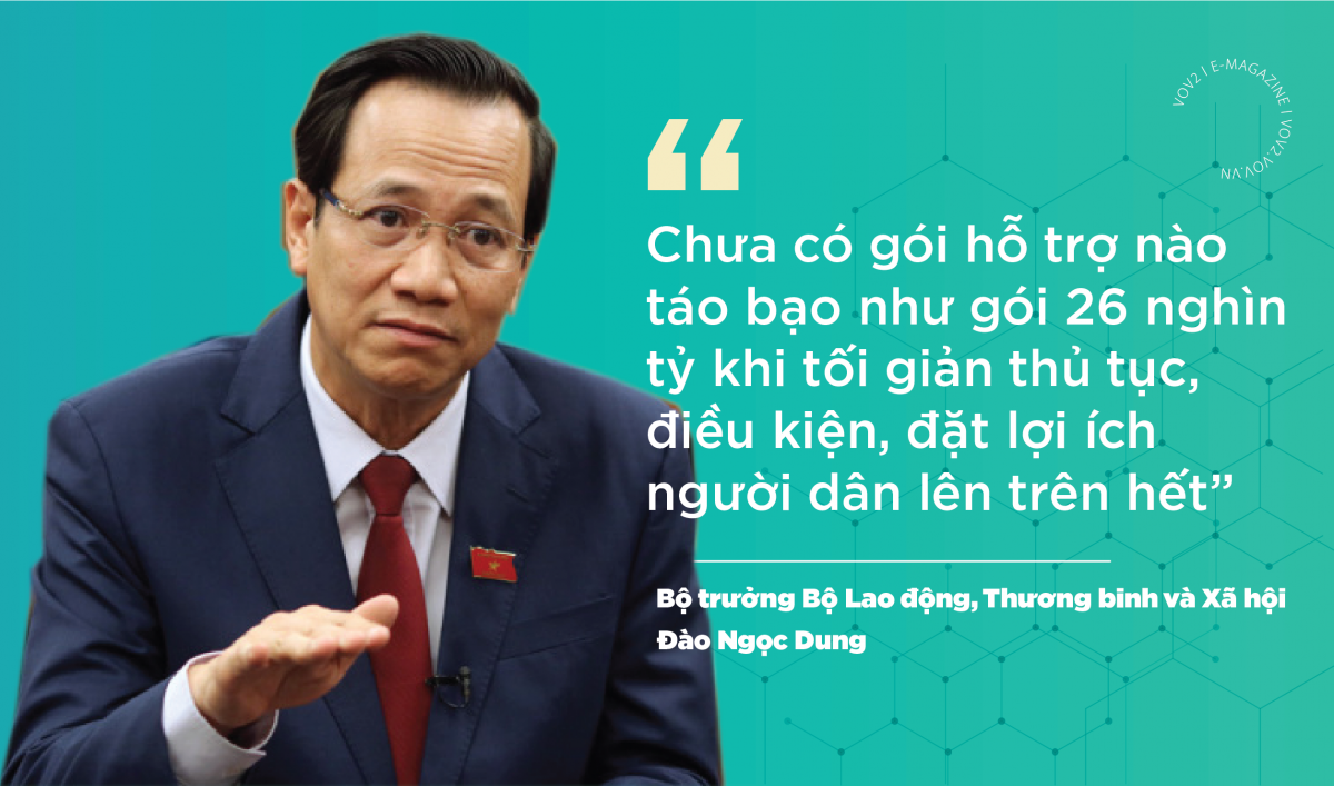 “Nếu triển khai chậm là có lỗi với dân, để xảy ra tiêu cực hay trục lợi chính sách là có tội với dân”. Đó là câu mà người đứng đầu ngành Lao động-Thương binh và Xã hội - ông Đào Ngọc Dung liên tục nhấn mạnh nhiều lần khi chỉ đạo việc triển khai các gói hỗ trợ. Bên cạnh những hiệu quả từ các gói hỗ trợ an sinh xã hội, Bộ trưởng Đào Ngọc Dung cũng thẳng thắn thừa nhận, do nhiều áp lực nên vẫn có những chính sách hỗ trợ chưa đến được với người dân; một bộ phận cán bộ ở cơ sở sợ trách nhiệm, sợ sai, không dám làm, có nơi trong quá trình tổ chức thực hiện còn cứng nhắc, máy móc. “Tôi nghĩ rằng có một phần lỗi của ngành lao động, tuyên truyền không kỹ, không đầy đủ” -Bộ trưởng Đào Ngọc Dung khẳng định.