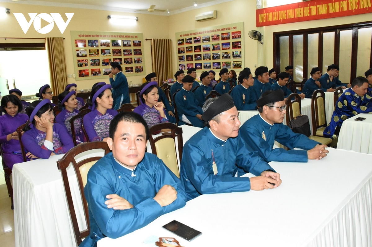 Cán bộ Sở VHTT tỉnh Thừa Thiên - Huế với áo dài ngũ thân truyền thống. Ảnh: VOV |