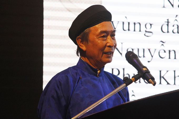 Nhà nghiên cứu Nguyễn Xuân Hoa trong trang phục áo dài ngũ thân. Ảnh: vnexpress.net