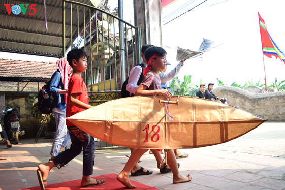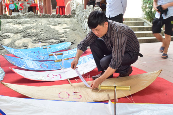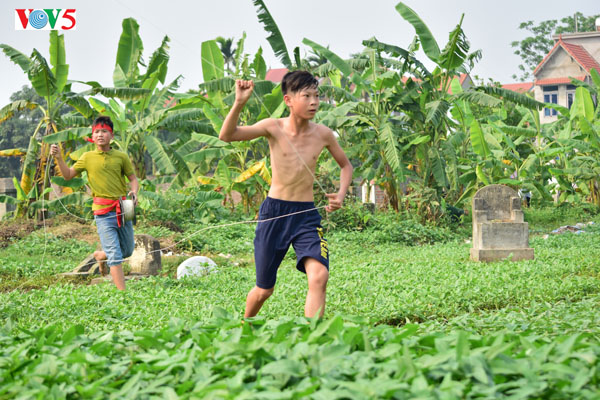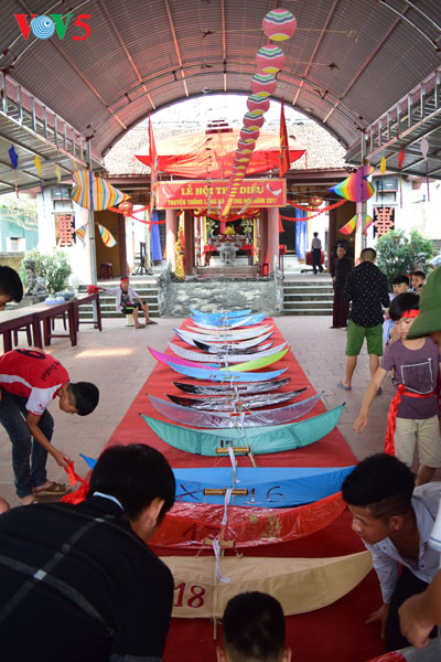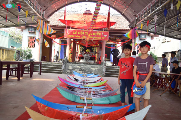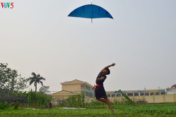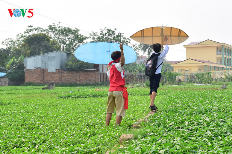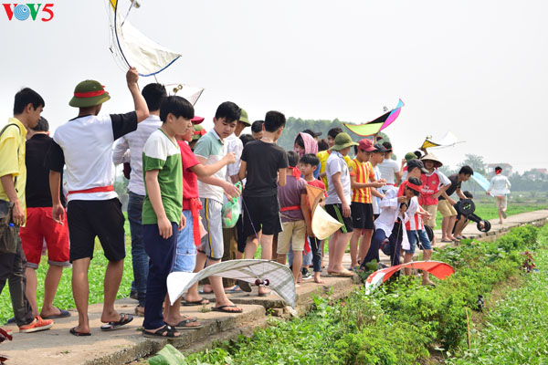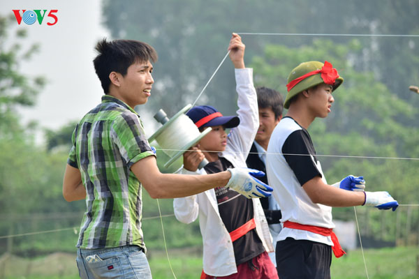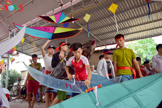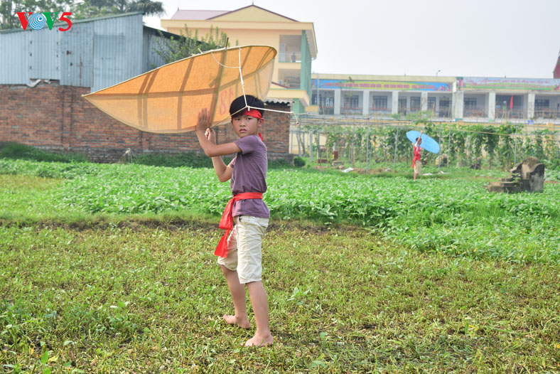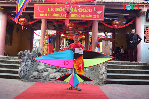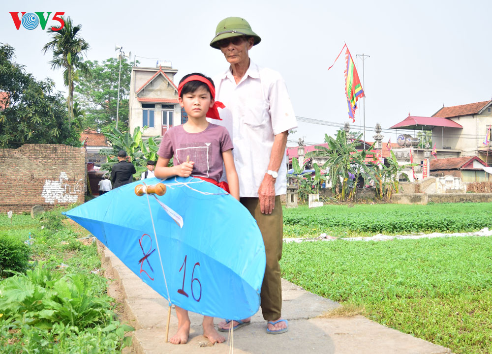 | Em Nguyễn Minh Tiến 14 tuổi tham gia hội thi thả diều năm nay cùng ông nội là Nguyễn Văn Bồi. Ông bồi năm nay 83 tuổi, là một nghệ nhân chơi diều trong làng. |