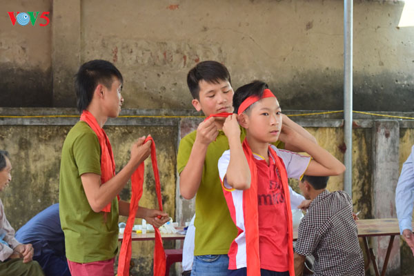 | Ban tổ chức khai mạc hội thi và các cụ trong làng đánh ba hồi chiêng, trống chính thức khai hội. |