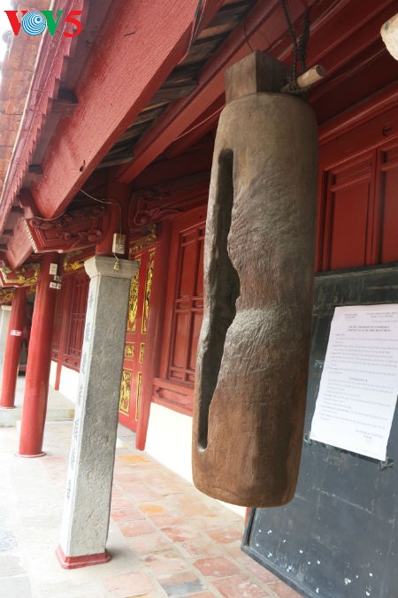 | Chiếc “chuông” gỗ treo tại cửa đình Quan Nhân, được làm từ một đoạn của cột đình cũ đã khoét rỗng ruột tạo nên nét rất độc đáo của đình. |