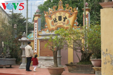 | Người dân trong làng thường đưa con cháu đến đình để giới thiệu về những nét văn hóa đặc trưng về làng của mình. |