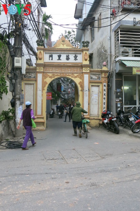 | 4 chữ Hán trên cổng làng là “Kinh Hoa lý môn”, nghĩa là Cổng làng Kinh Hoa. Đặc biệt, chữ Hoa được viết theo lối chữ Huý thiếu một nét sổ. Vì vào triều Nguyễn đời Thiệu Trị, chữ Hoa (華) là tên mẹ vua Thiệu Trị (tức bà Hồ Thị Hoa – 1790-1807) nên tất cả chữ Hoa đều phải viết theo lối kiêng huý, thiếu một nét sổ. Người xưa gọi là “kính khuyết nhất bút”, nghĩa là kính nên thiếu nét sổ. Viết tên cổng làng bằng chữ huý cho thấy Kẻ Mọc là làng chữ nghĩa và tuân thủ theo nhưng quy định của triều đình phong kiến xưa. |
