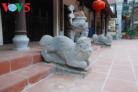 | Một đôi sấu đá phong cách thời Nguyễn chầu trước đình Cự Chính. |