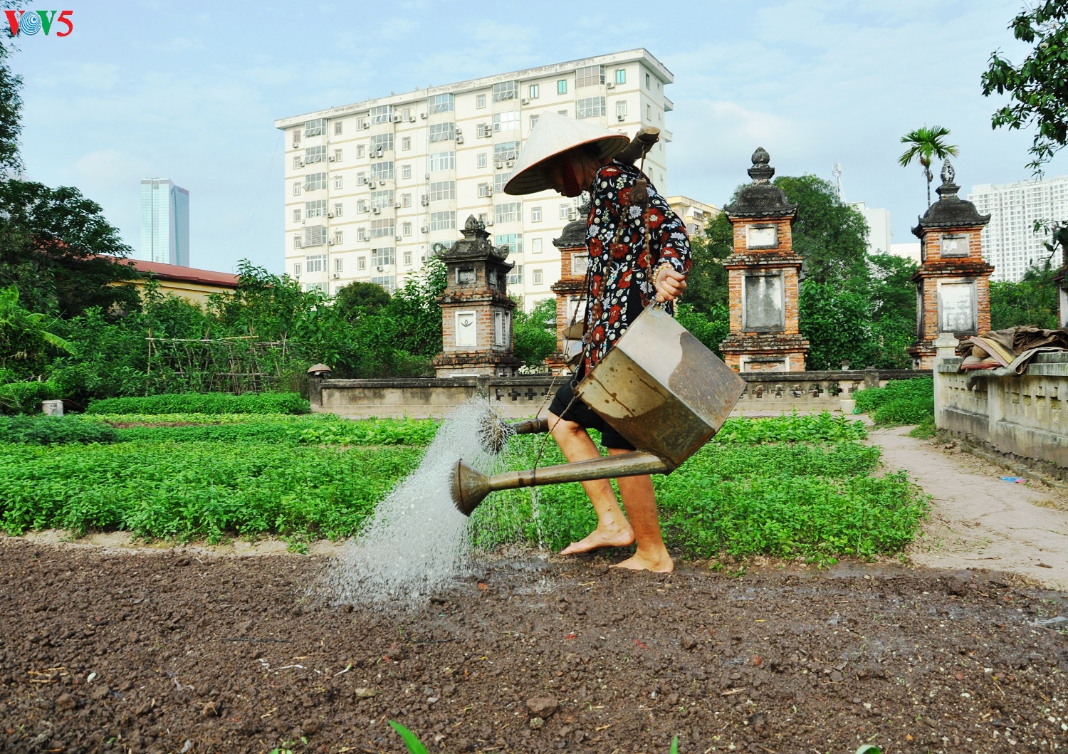 Cụ Trương Thị Định, người làng Láng,nghệ nhân dân gian trồng rau gia vị, một trong những người trồng húng Láng nổi tiếng của làng còn lại. Hàng ngày cụ vẫn đến vườn chùa để tưới rau.