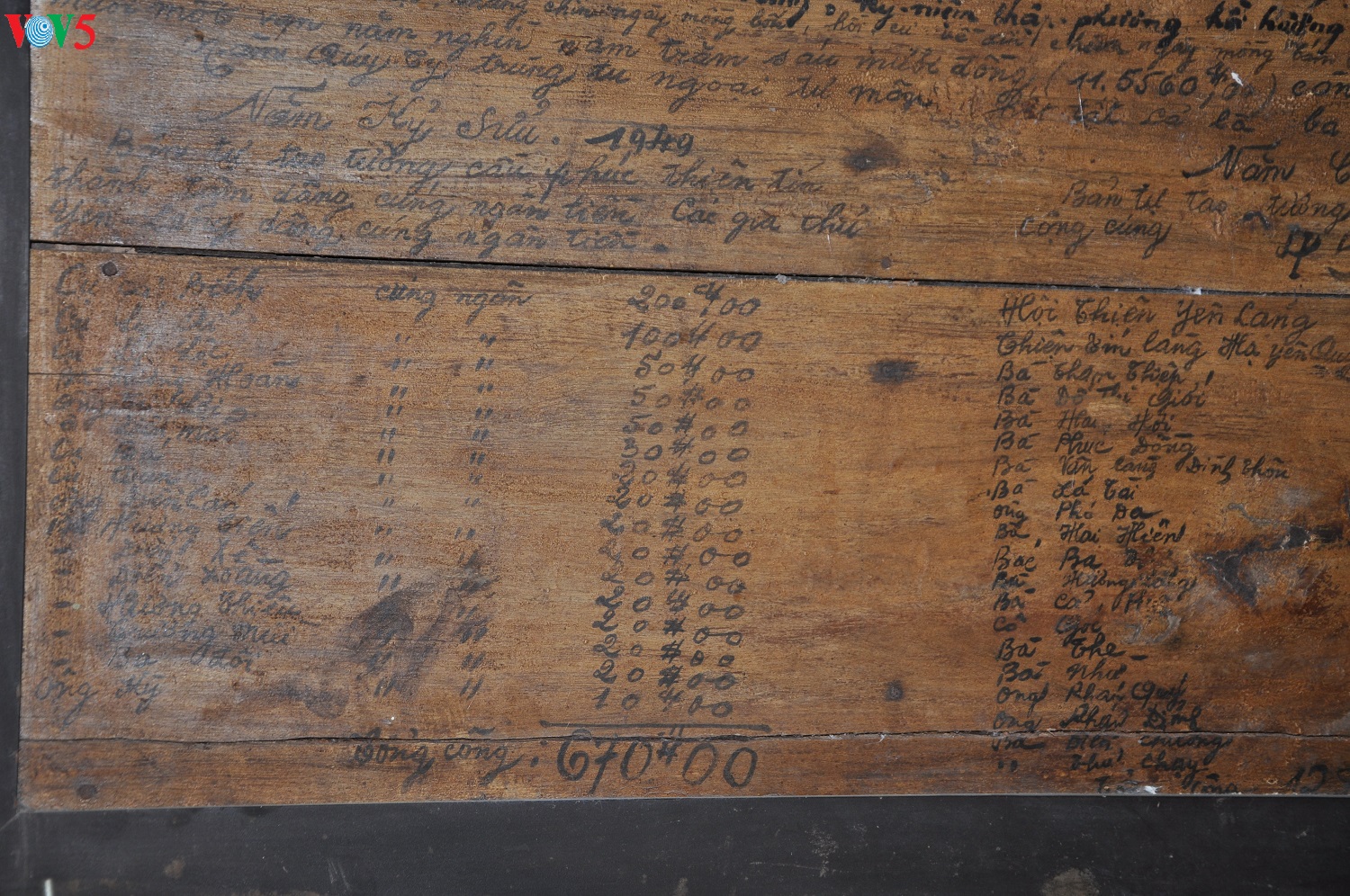 Bảng ghi công đức sửa chùa năm 1952 được thầy Thích Đàm Huyền, trụ trì chùa Láng gìn giữ và trùng tu y hệt như cũ.