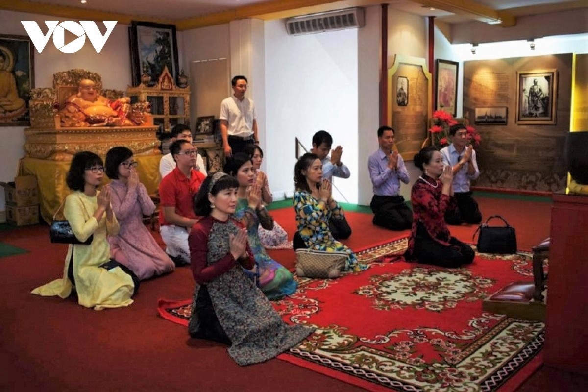 Một buổi đi lễ chùa đầu năm tại chùa Khánh Vân (Wat Upairadbamrung) ở Bangkok. Ảnh: PV/VOV – Bangkok) |