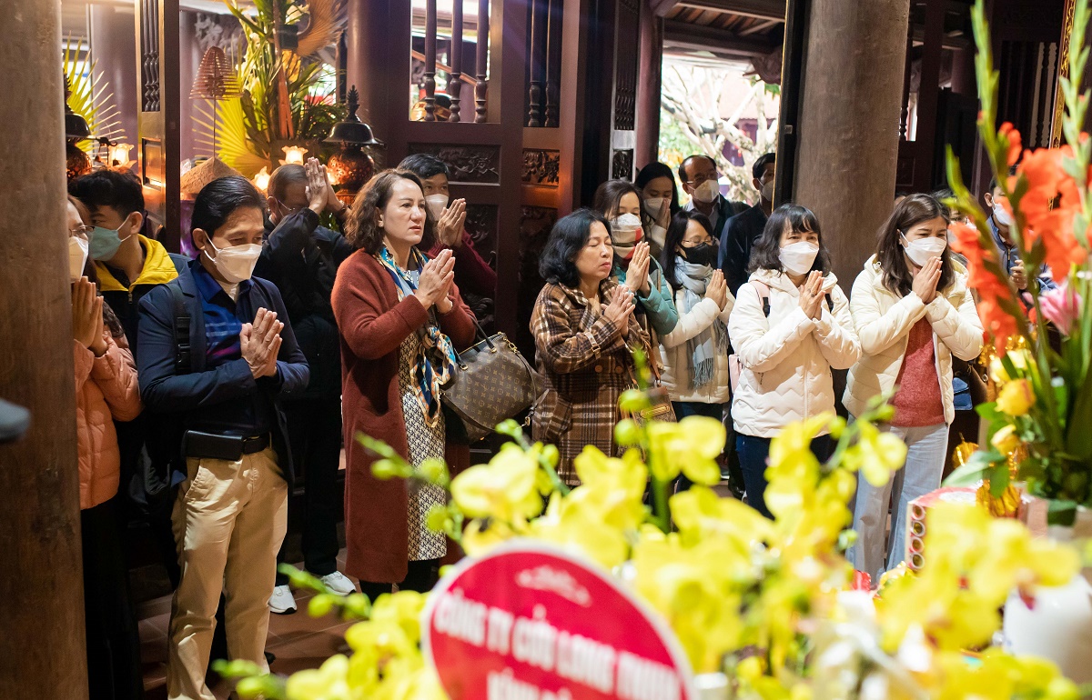 Chiêm bái, vãn cảnh đền, chùa để cầu mong sức khỏe, may mắn cho bản thân và gia đình trong những ngày đầu năm là nét đẹp văn hóa từ ngàn đời nay của người Việt. Ảnh: CTV Tuấn Anh/VOV |
