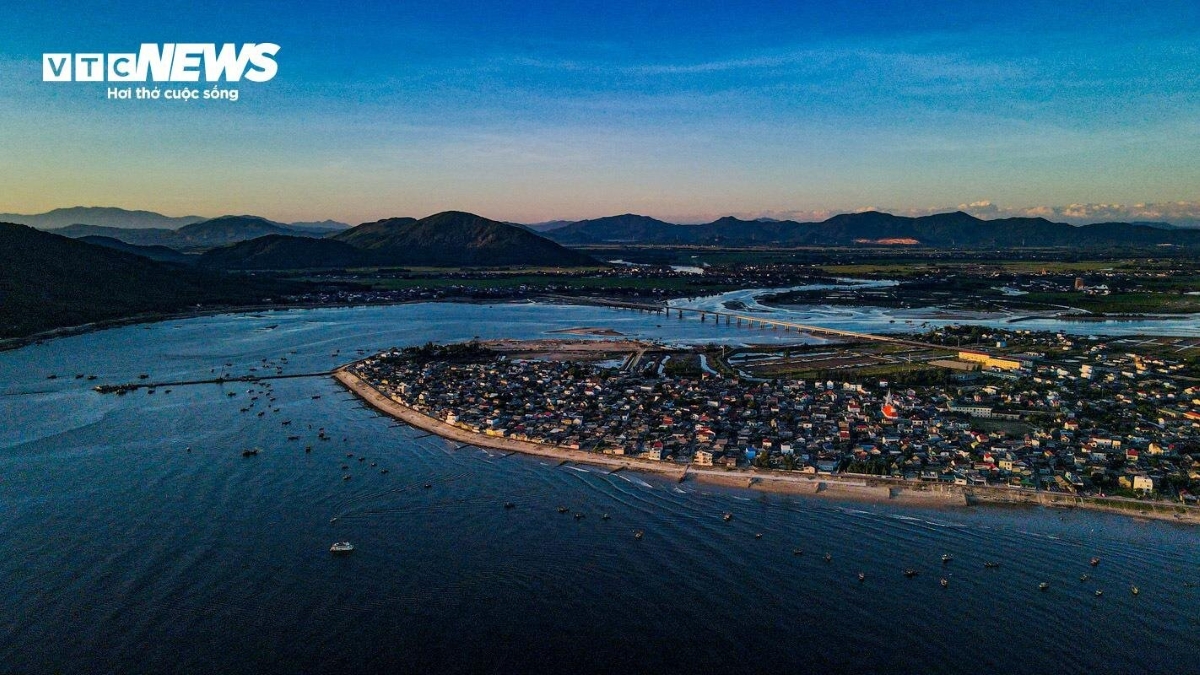 Làng chài hàng trăm năm tuổi Cửa Nhượng lấp ló sau những ánh mặt trời đầu tiên của ngày mới. |