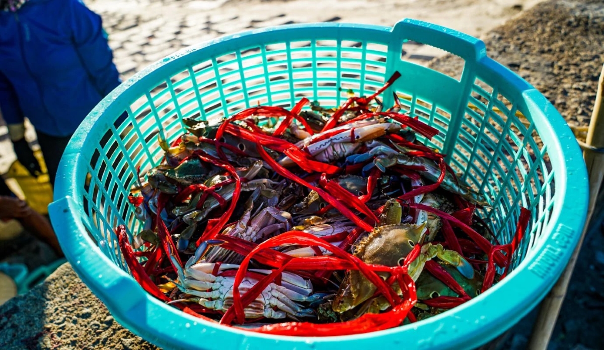 Hải sản tươi sống được ngư dân đưa lên bờ. Cua, ghẹ ở Hà Tĩnh nổi tiếng bởi độ tươi ngon, sẵn sàng chinh phục các thực khách. |