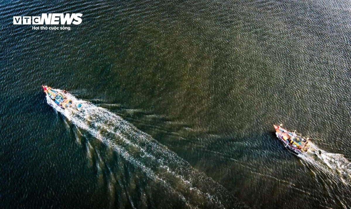 Mặt trời ló rạng cũng chính là thời điểm từng đoàn thuyền đánh cá nối đuôi nhau mang những khoang hải sản đầy ắp trở về. |
