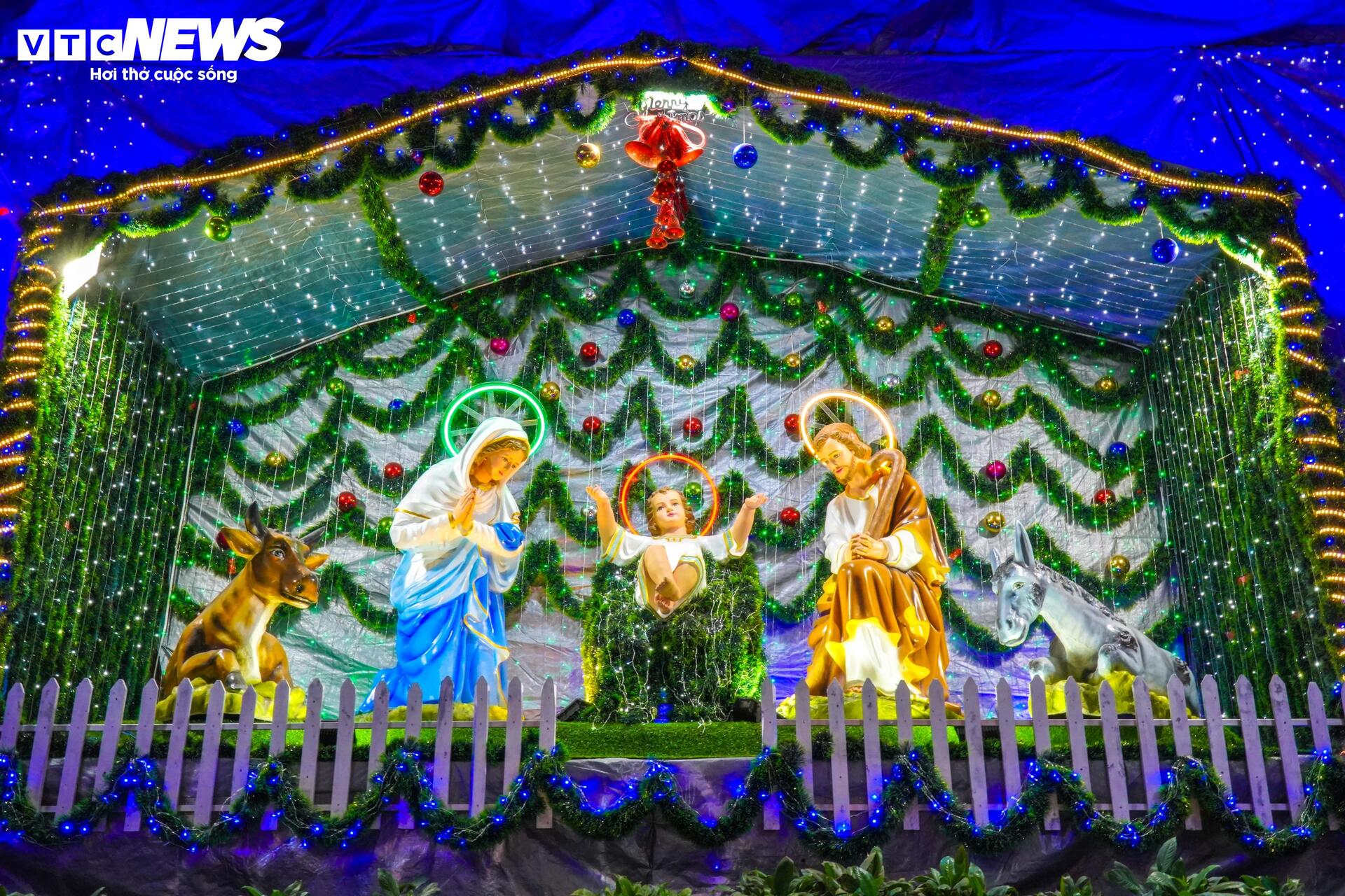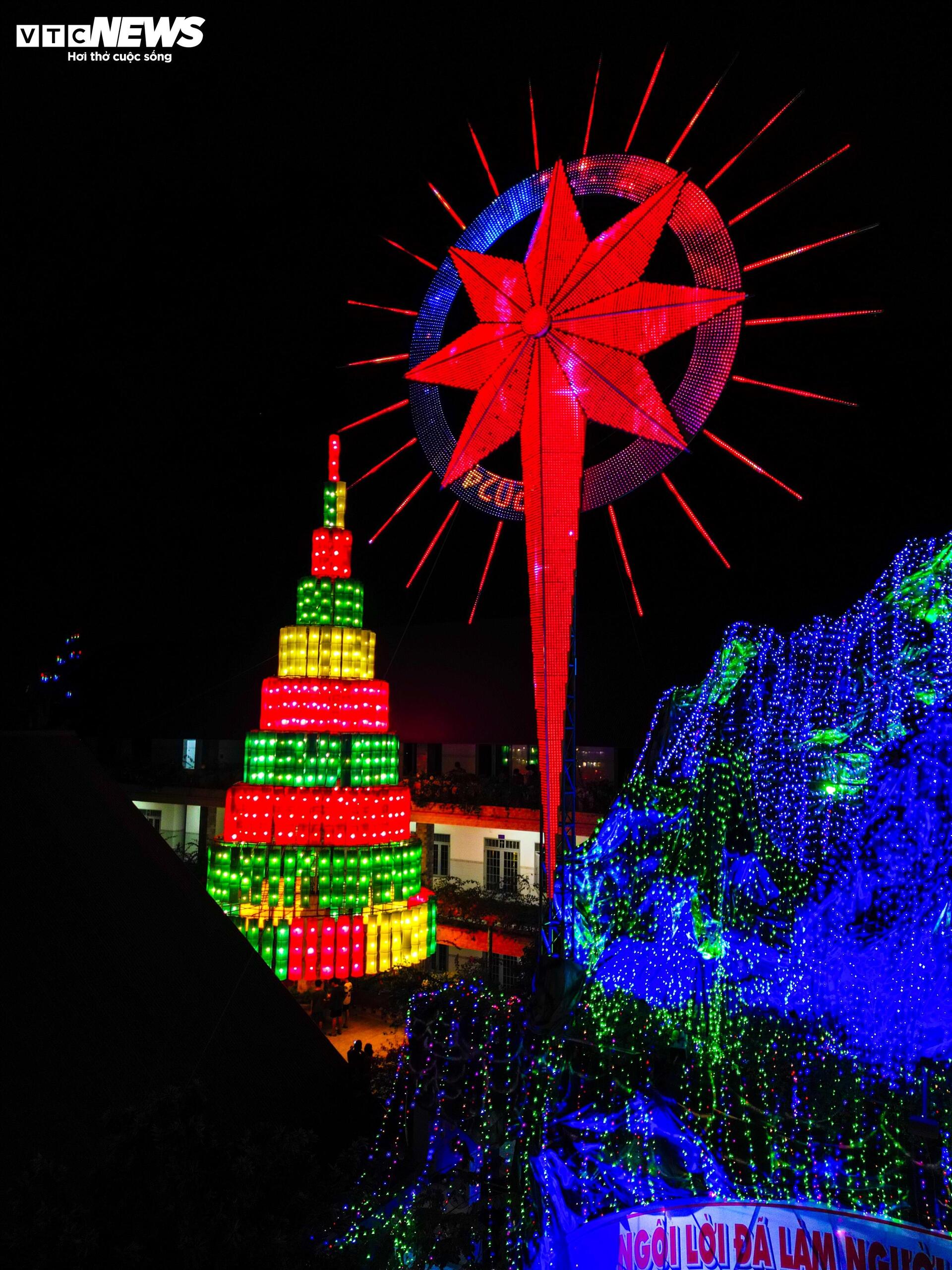 | Không chỉ hút khách bằng cây thông Noel nón lá, nhà thờ giáo xứ Hà Phát còn trở thành địa điểm "săn ảnh" hấp dẫn bởi nhiều tiểu cảnh được trang trí độc đáo, lấp lánh ánh đèn. |