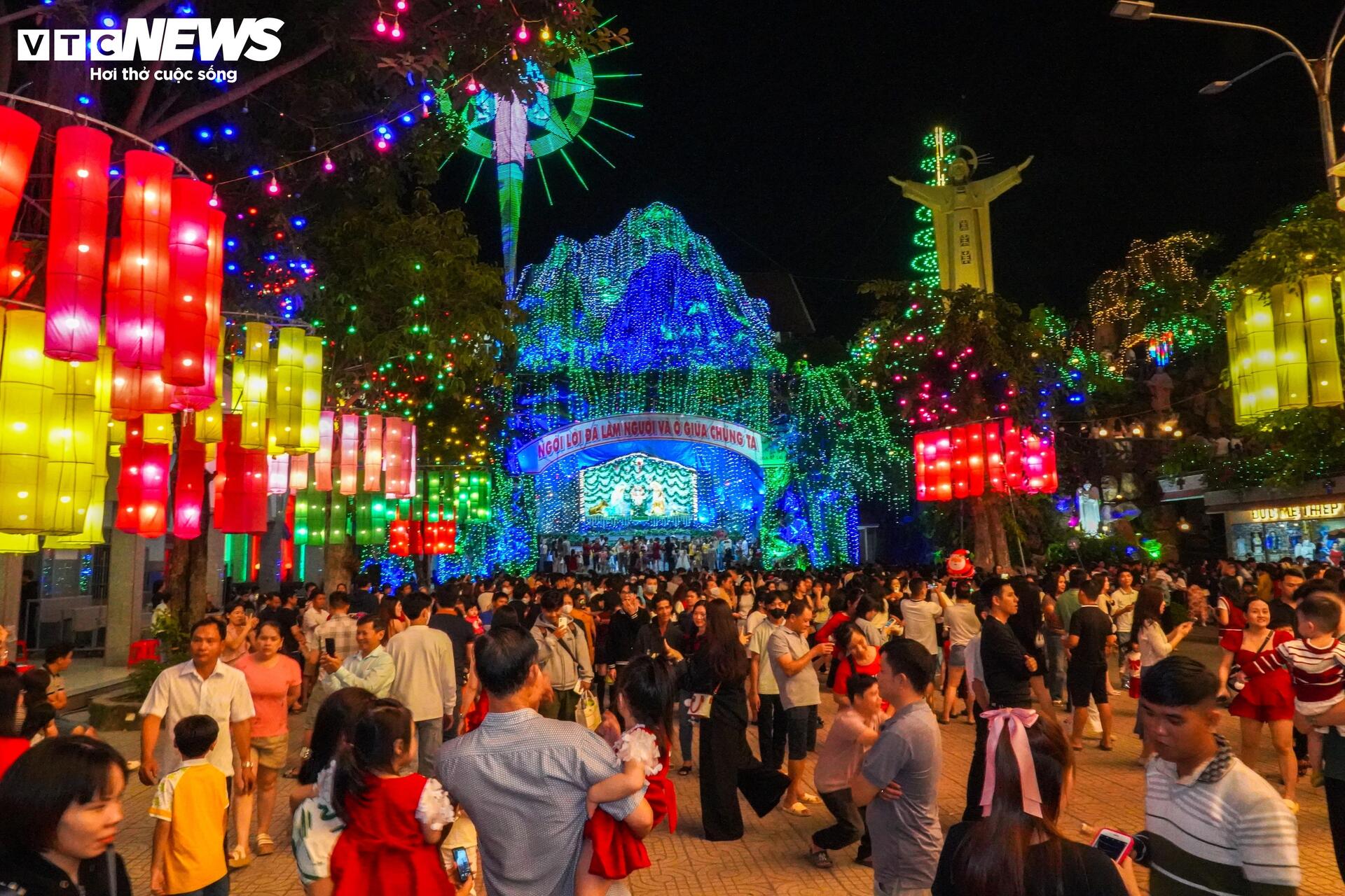 | Ghi nhận, đúng 19h cây thông nón lá sẽ được thắp sáng hằng đêm để phục vụ nhu cầu tham quan và chiêm ngưỡng của người dân, du khách. |