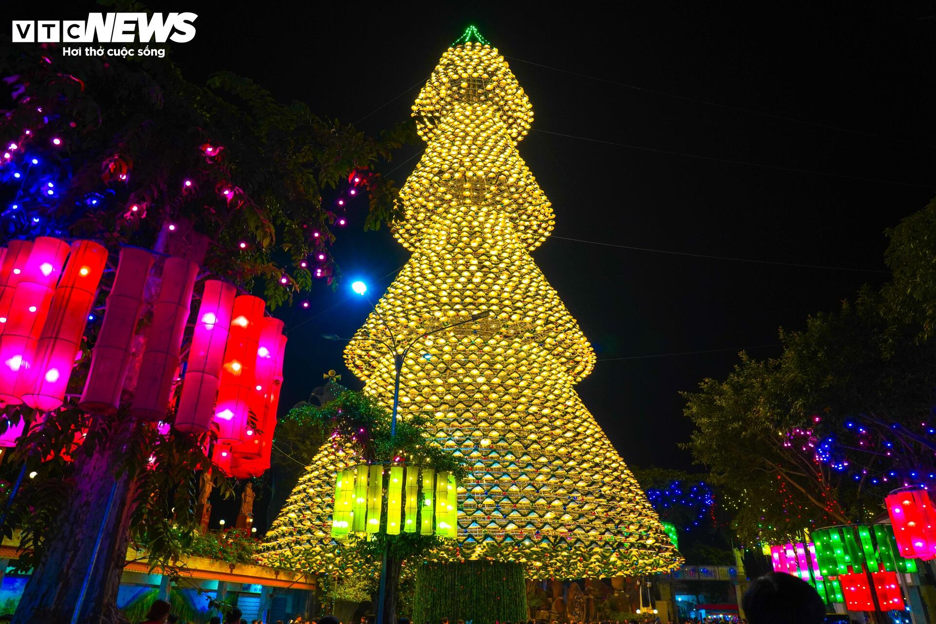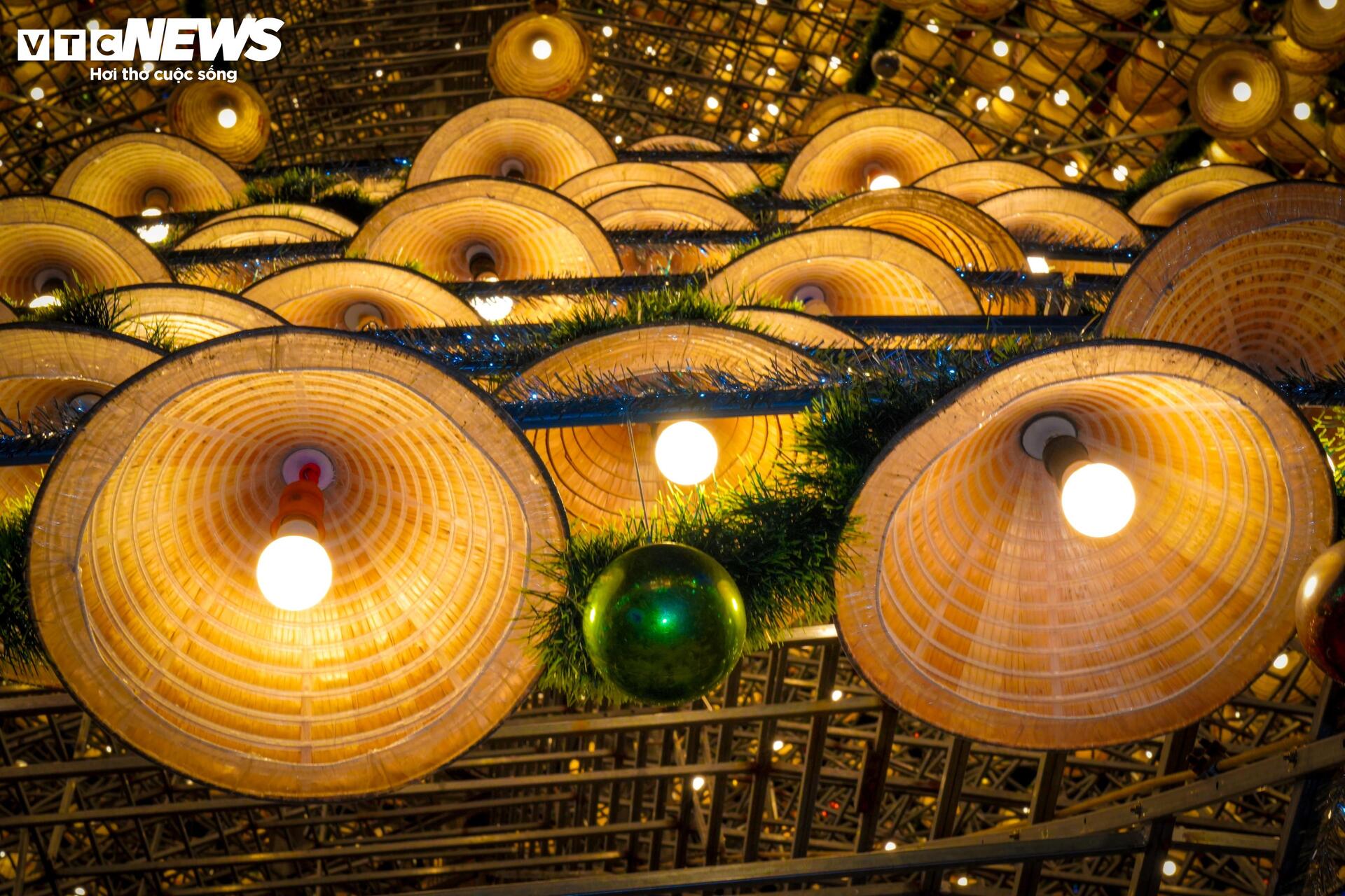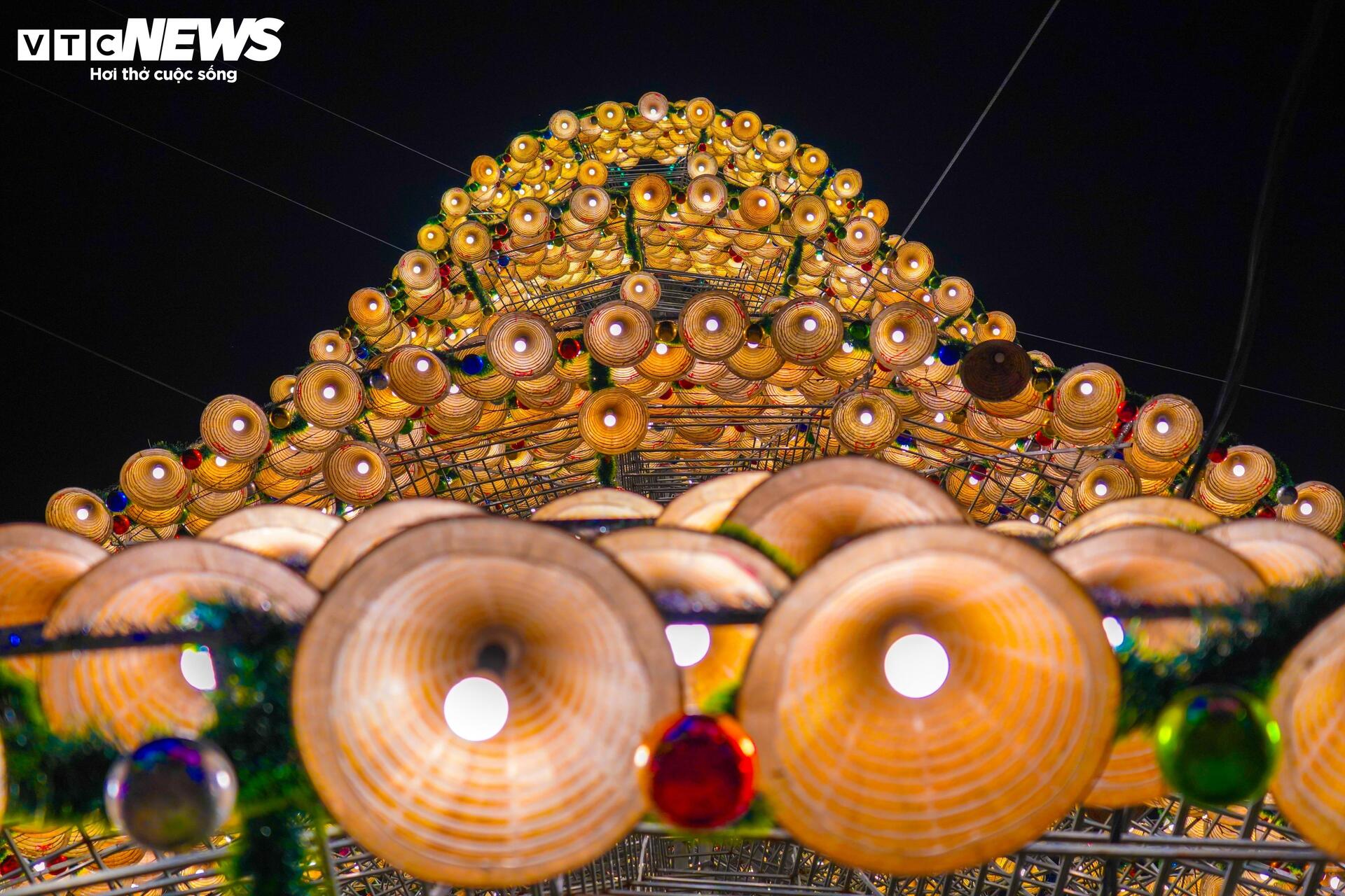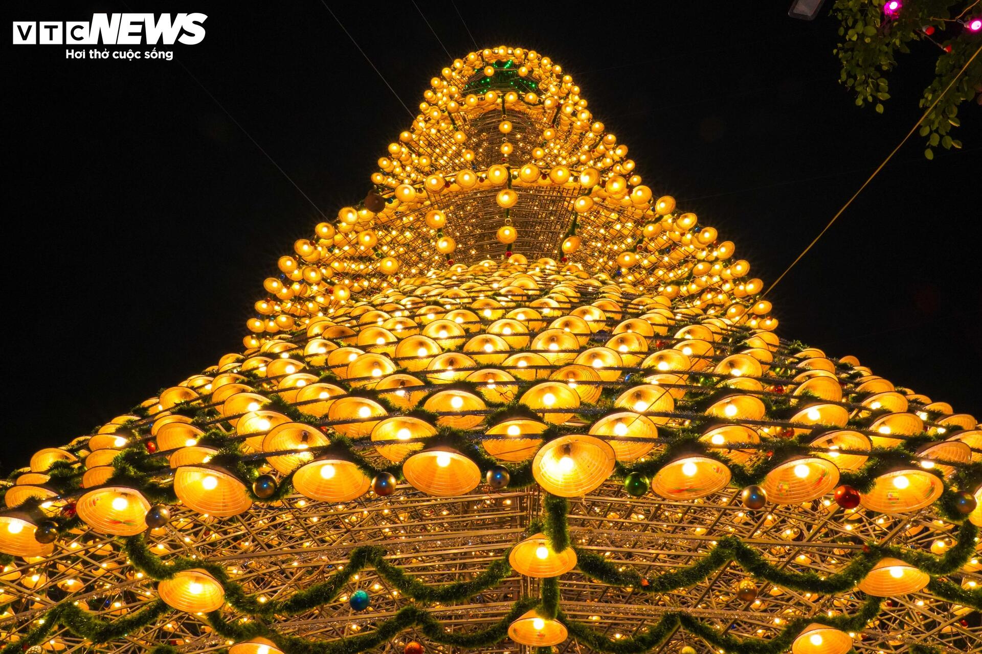 Độc đáo cây thông Noel kết từ 3.800 chiếc nón lá ở Đồng Nai.