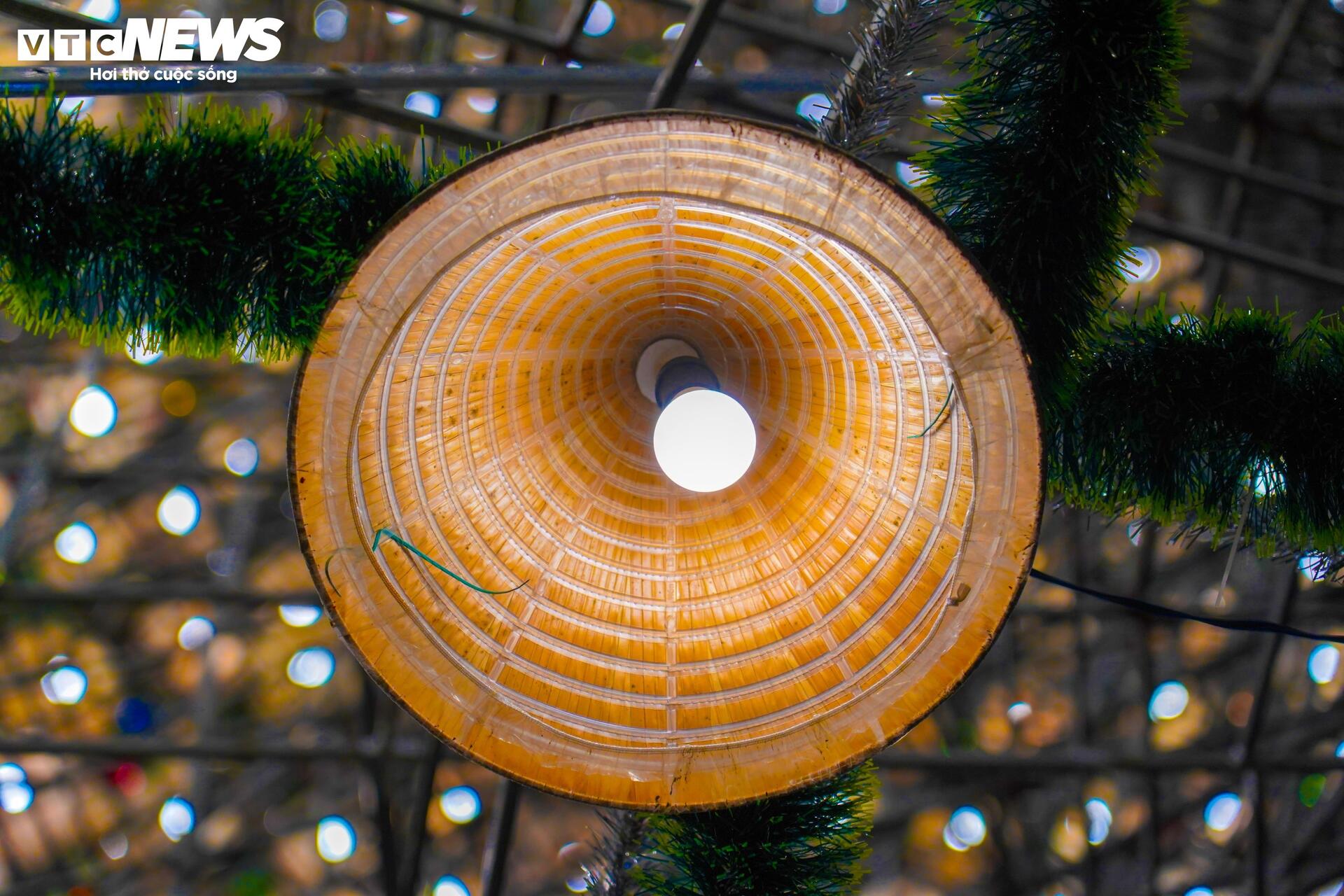 | Những chiếc nón lá được sắp đặt so le một cách khéo léo tạo nên cây thông 4 tầng độc nhất vô nhị. |