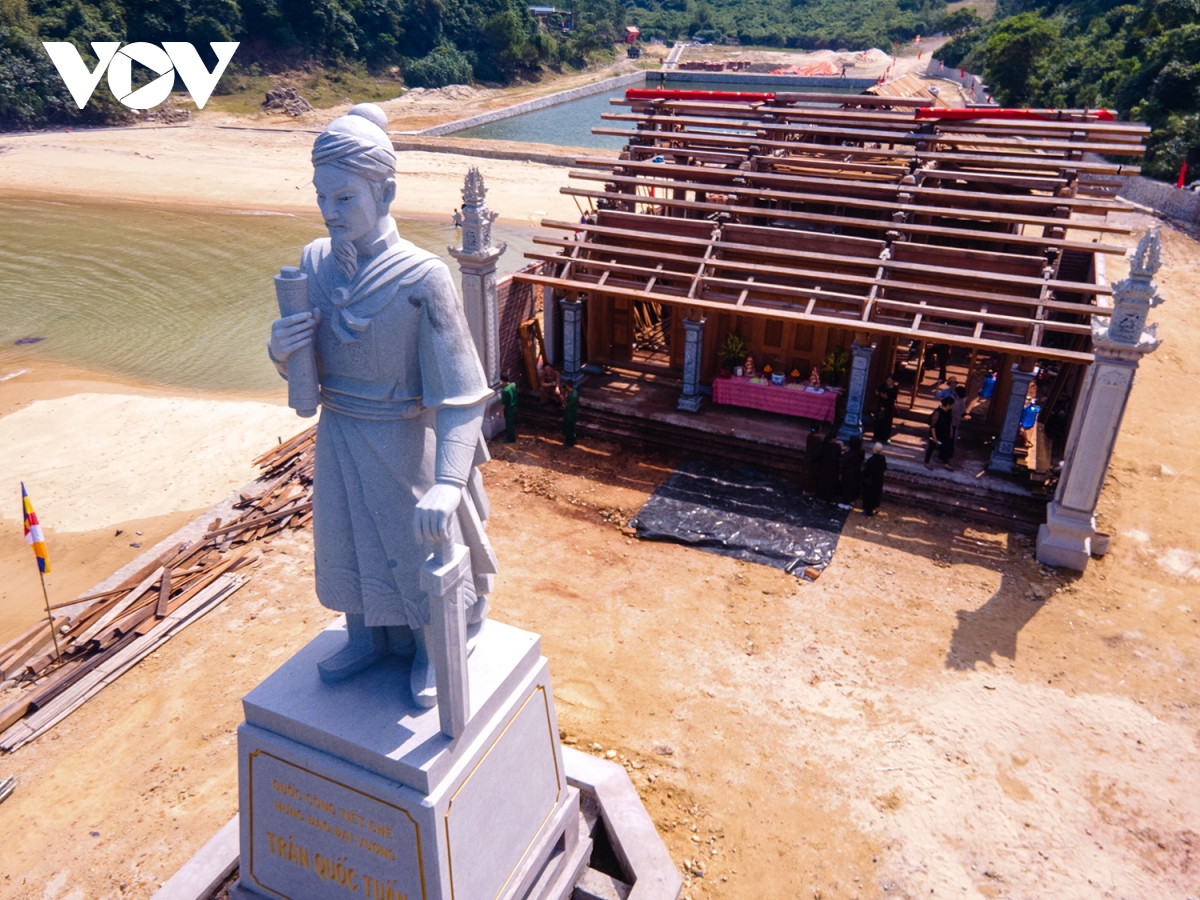 Tượng Quốc Công Tiết Chế Hưng Đạo Đại Vương bằng đá Granit với chiều cao 8,5m được an trí theo hướng Tây Bắc, nhìn ra biển. |