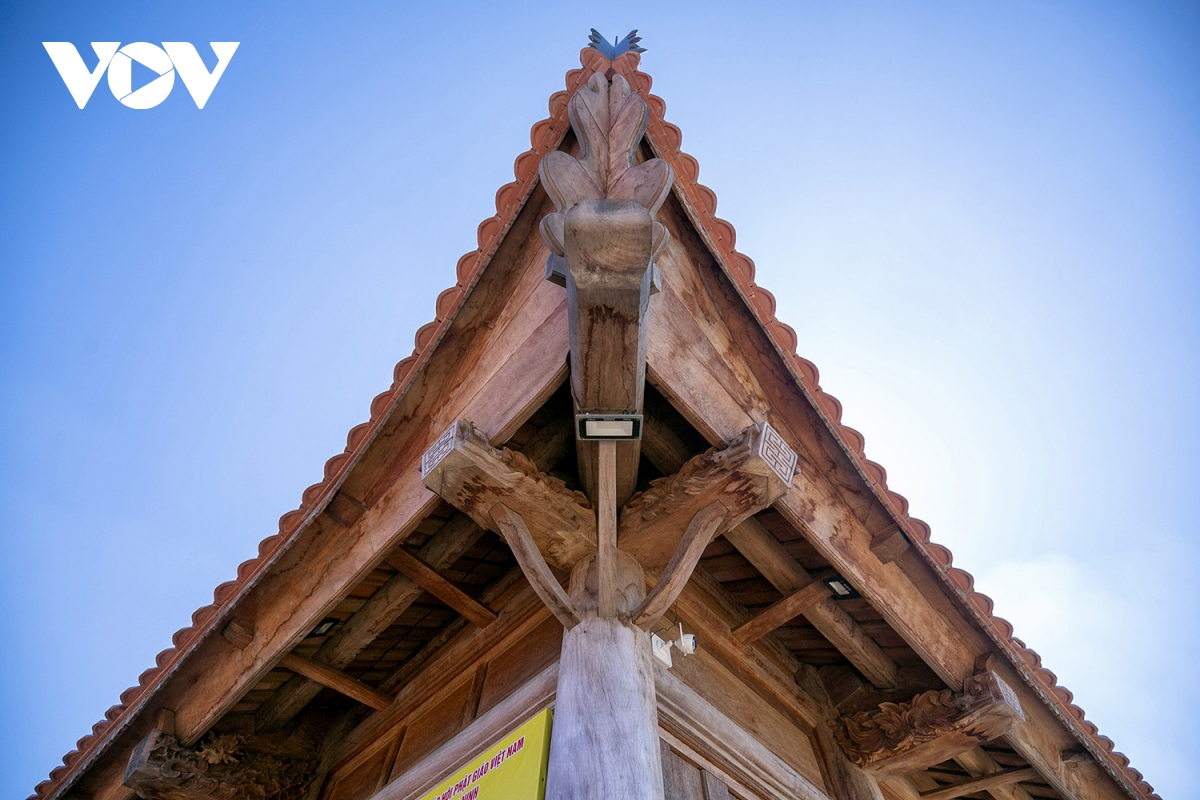 Mái điện và các công trình khác được lợp ngói mũi hài với hệ thống kìm nóc và đầu đao. Bờ chảy dạng bờ đinh kết hợp bờ nóc, bờ guột gạch hoa chanh. |