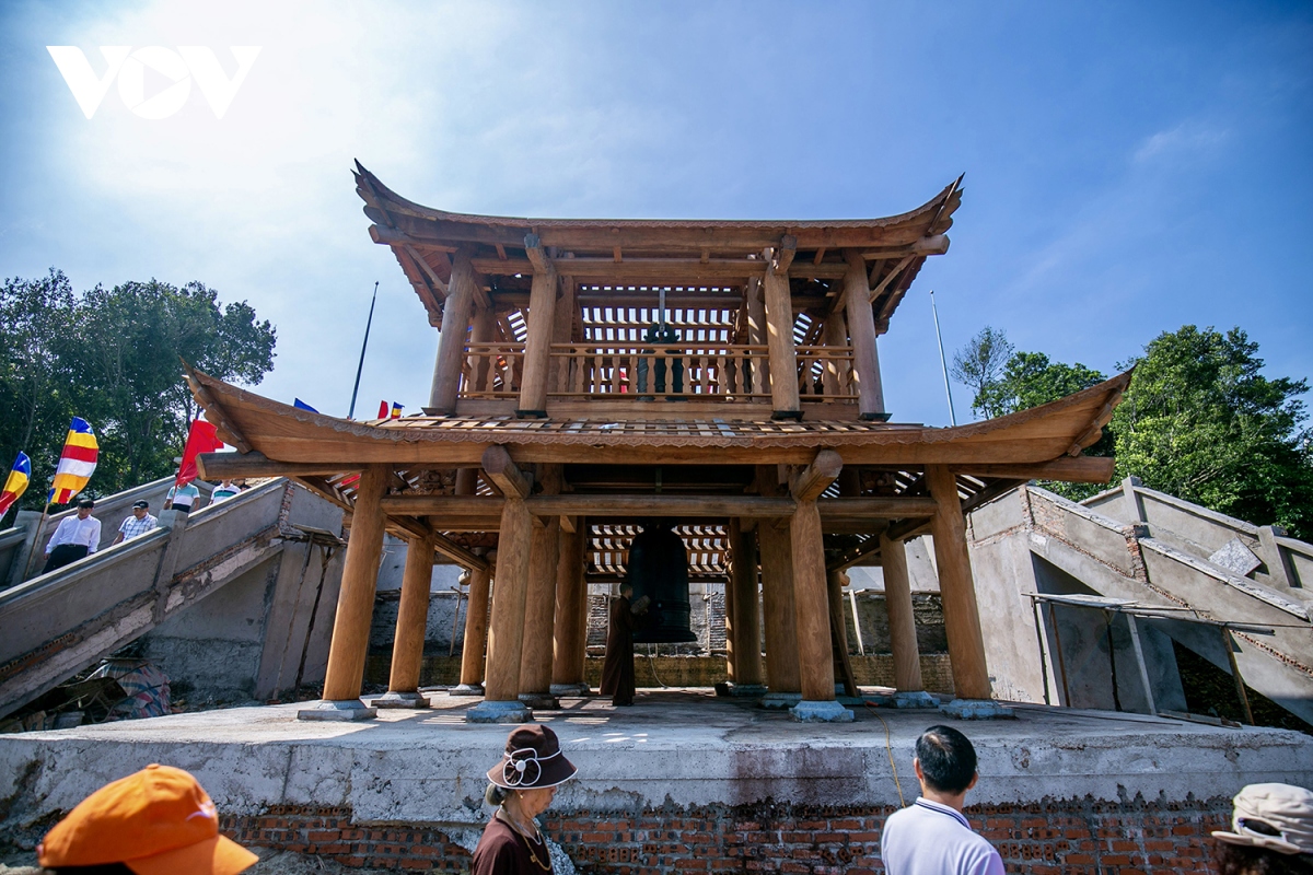 Sau hơn 1 năm thi công, tiến độ công trình diễn ra tương đối thuận lợi, các hạng mục trong giai đoạn 1 như: ngôi Đại hùng Bảo điện, Nhà thờ Tổ, ngôi Tam Bảo, tượng Quan Thế Âm Bồ Tát, tượng Quốc Công Tiết chế Hưng Đạo Đại Vương đều đã hoàn tất. |