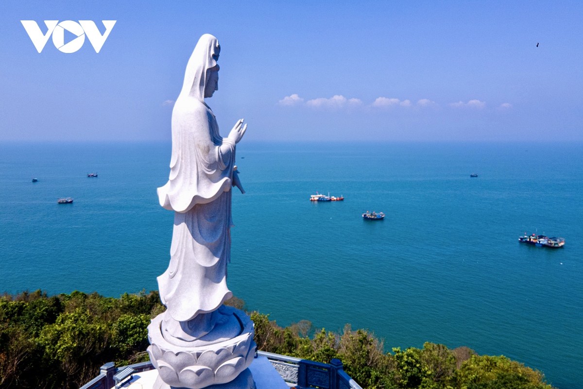 Tượng Quán Thế Âm Bồ tát bằng đá Granit có chiều cao tổng thể 15,9 m hướng ra biển đã hoàn thành. |