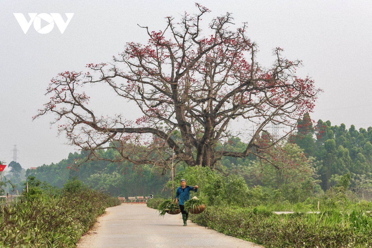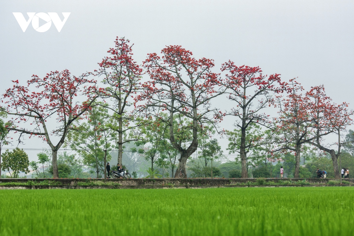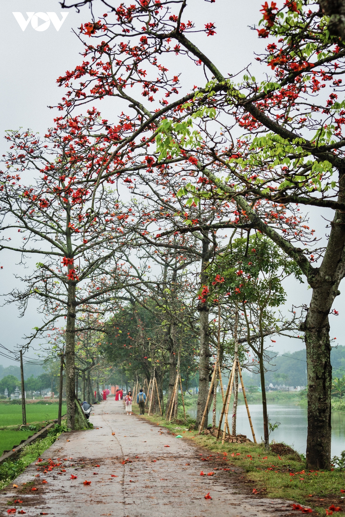 "Bao giờ cho đến tháng 3, hoa gạo rụng xuống bà già cất chăn". Thời điểm này nhiều con đường ở các vùng quê trải dài màu đỏ rực của hoa gạo đem lại nhiều cảm xúc về một miền quê Bắc Bộ yên bình.