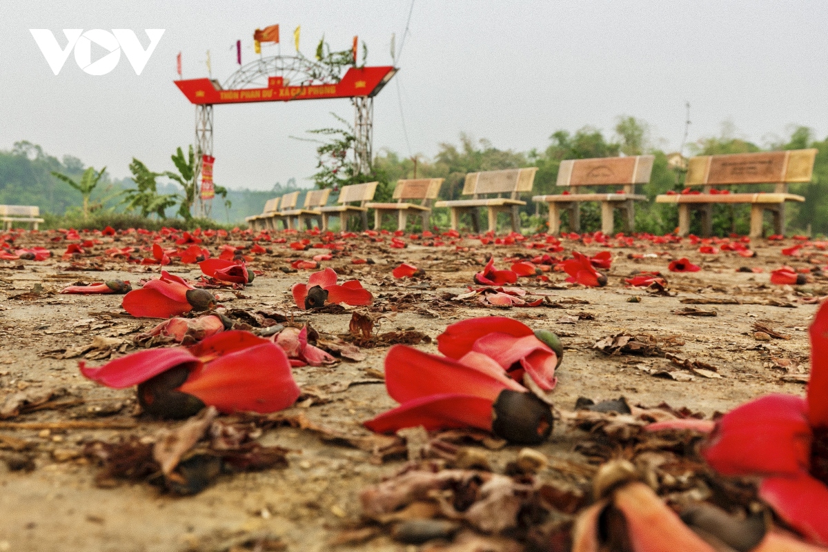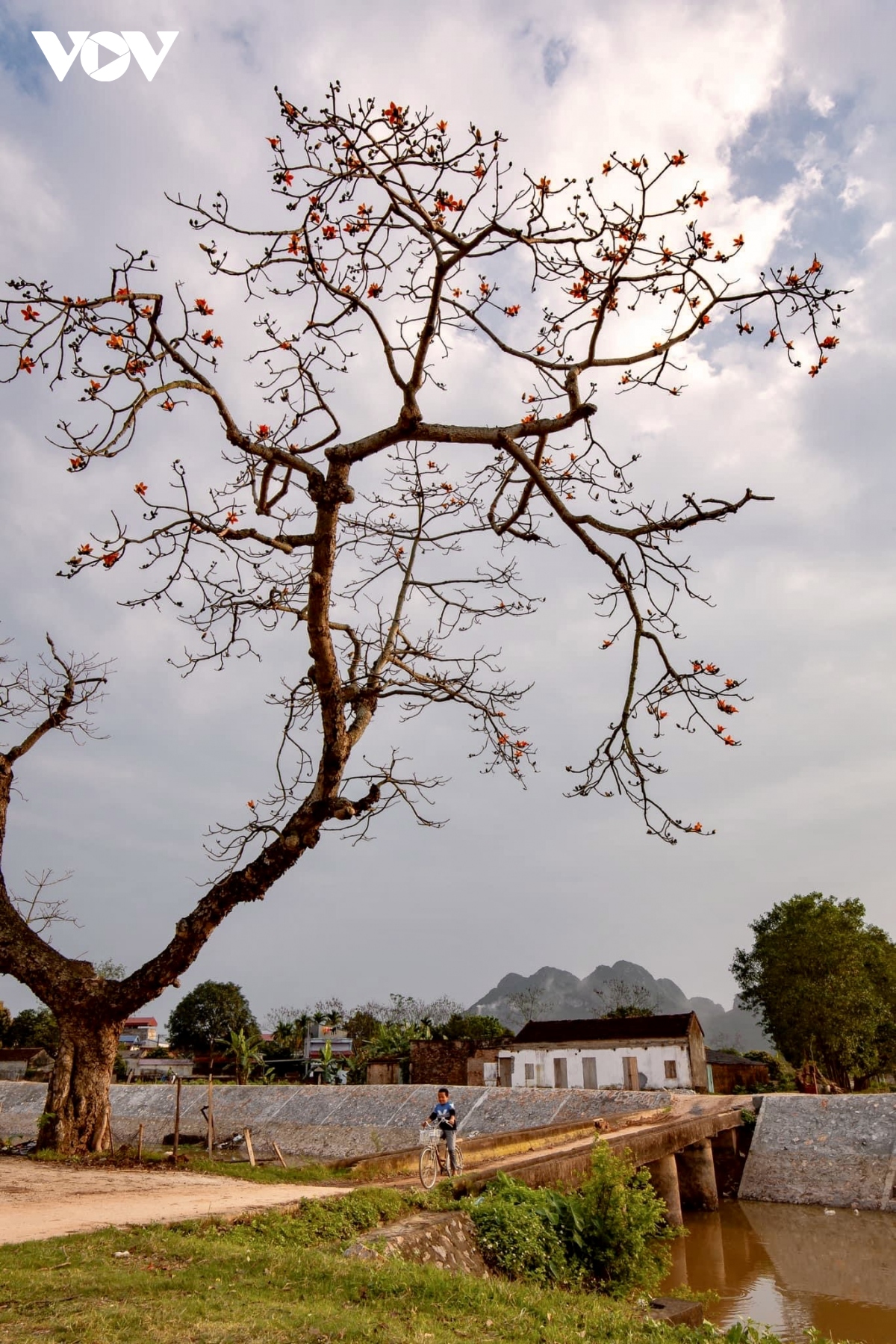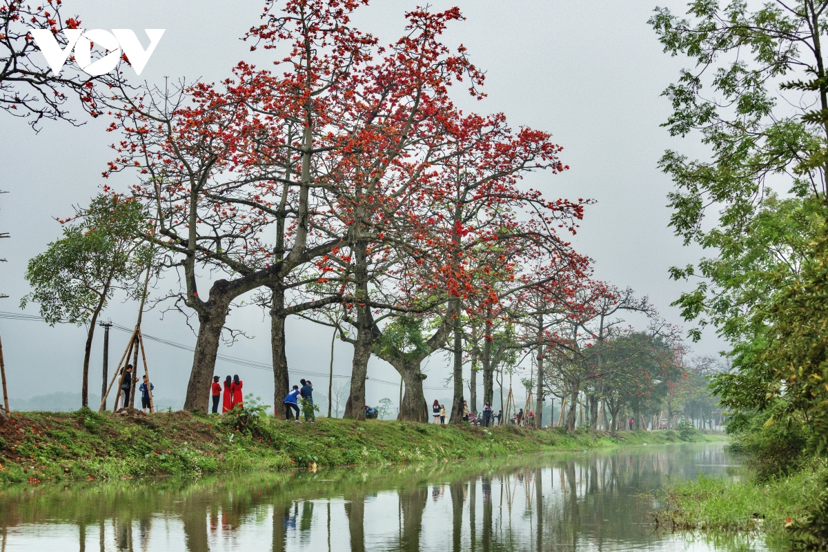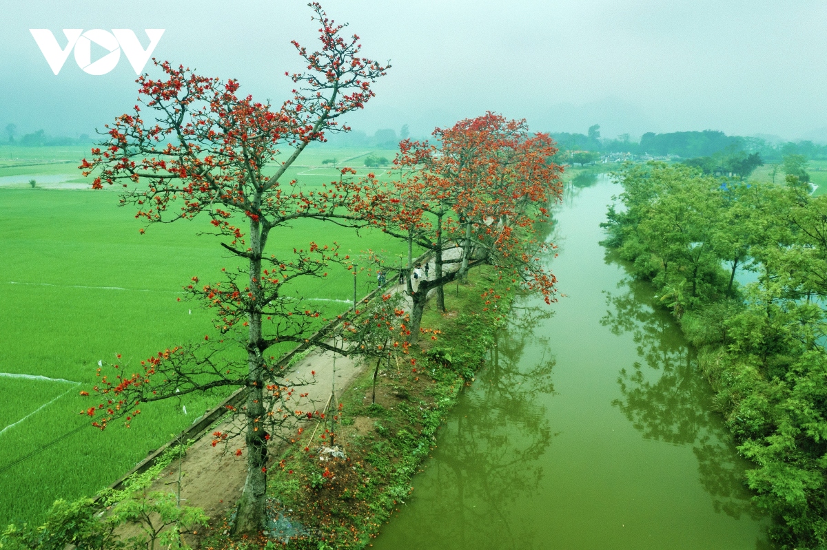 "Bao giờ cho đến tháng 3, hoa gạo rụng xuống bà già cất chăn". Thời điểm này nhiều con đường ở các vùng quê trải dài màu đỏ rực của hoa gạo đem lại nhiều cảm xúc về một miền quê Bắc Bộ yên bình.
