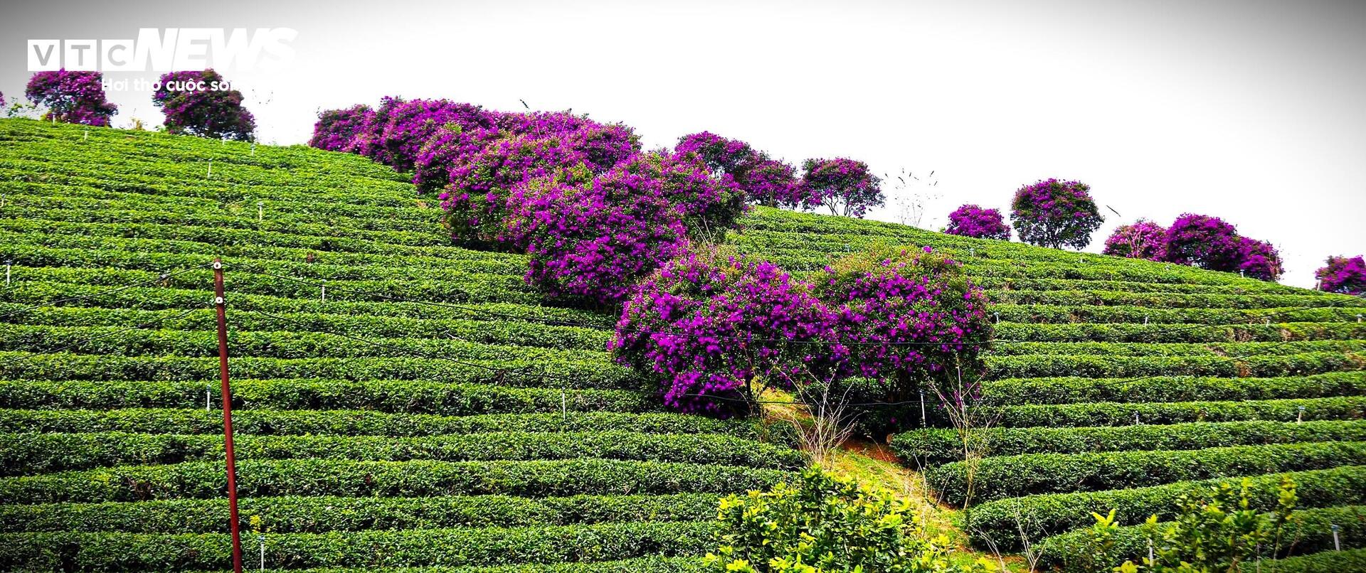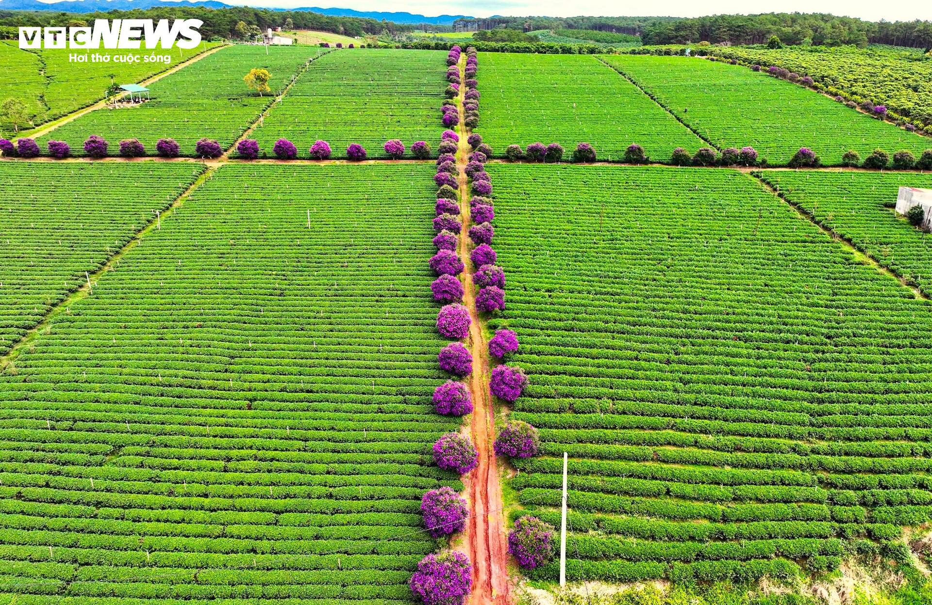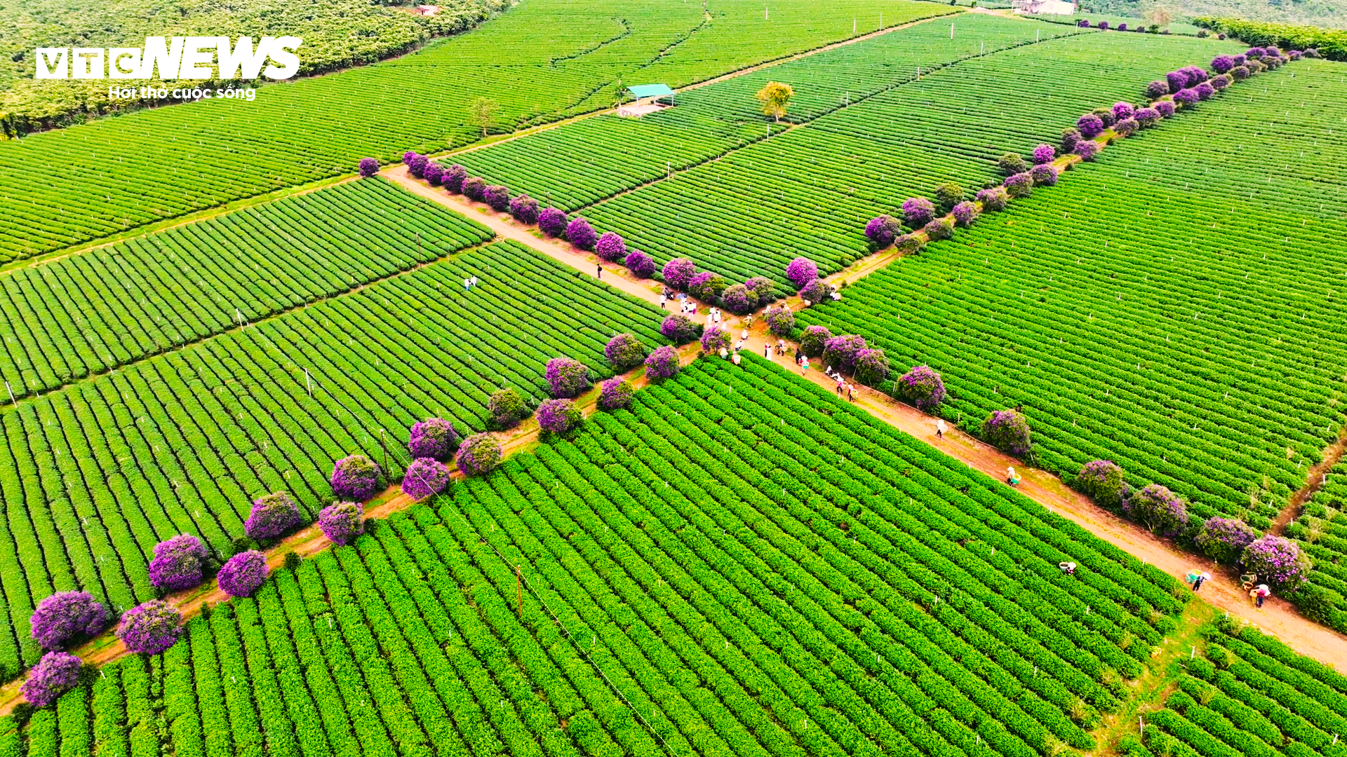 Hoa mua nở tím rộ trên đồi chè xanh ở Lâm Đồng.