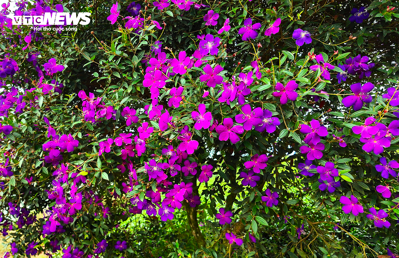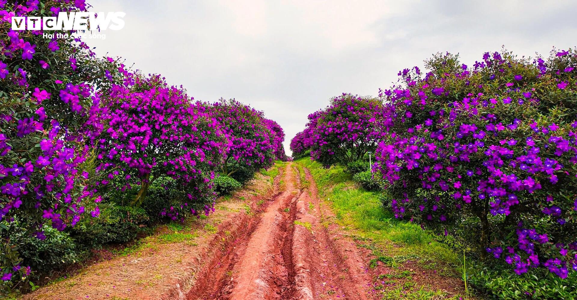 | Theo đại diện nông trường chè xanh, đây là giống hoa mua tím được nhập khẩu từ Úc có tên khoa học là Melastoma candidum D.Don. |