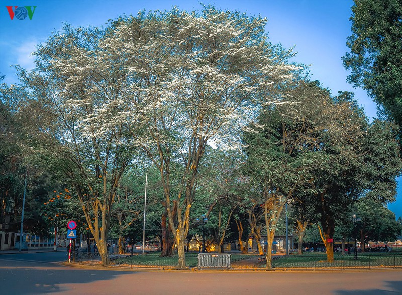 Đầu tháng 3, khi Xuân chưa qua, Hạ chưa tới cũng là lúc những cây sưa bung nở hoa trắng khắp các con phố của Thủ đô.