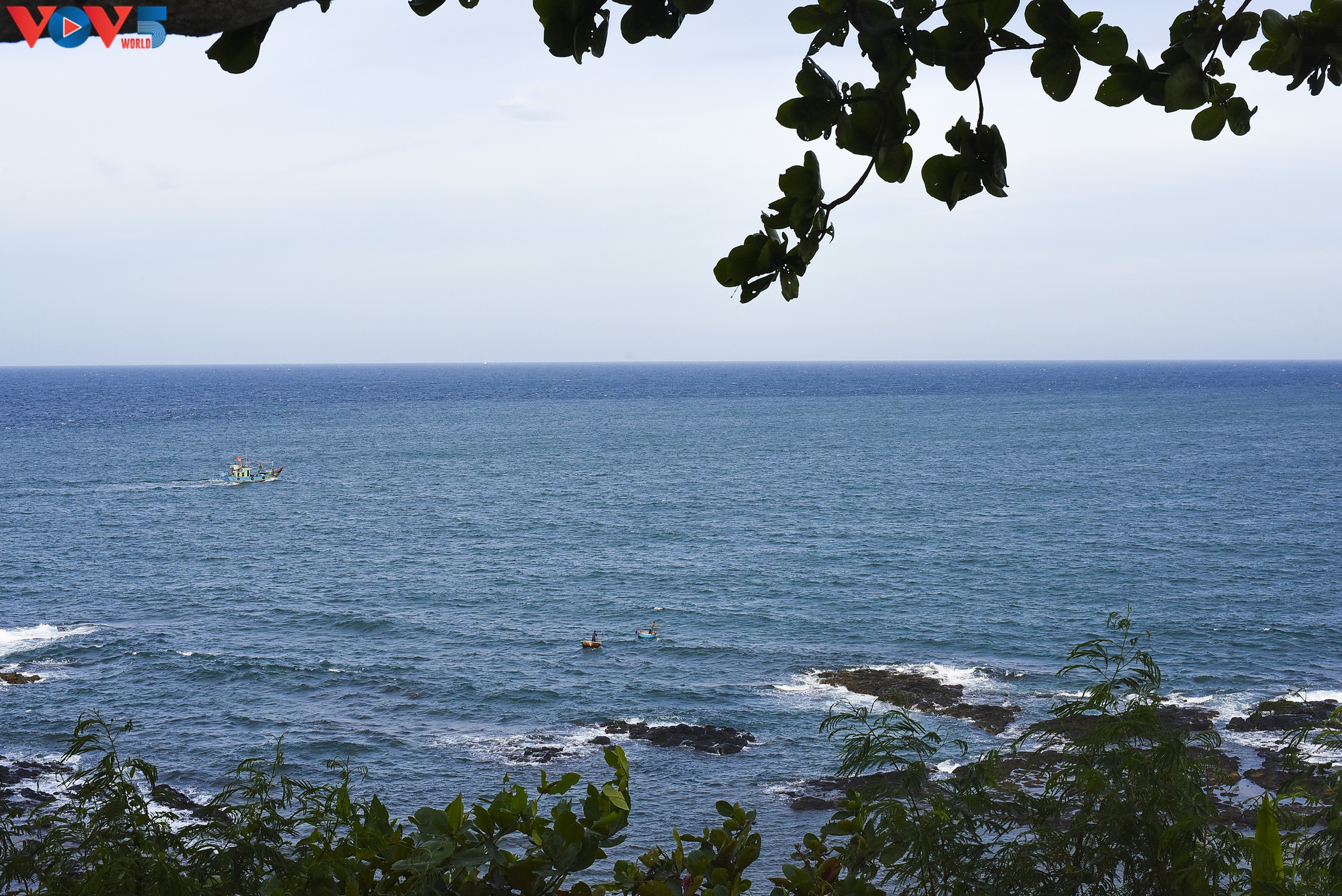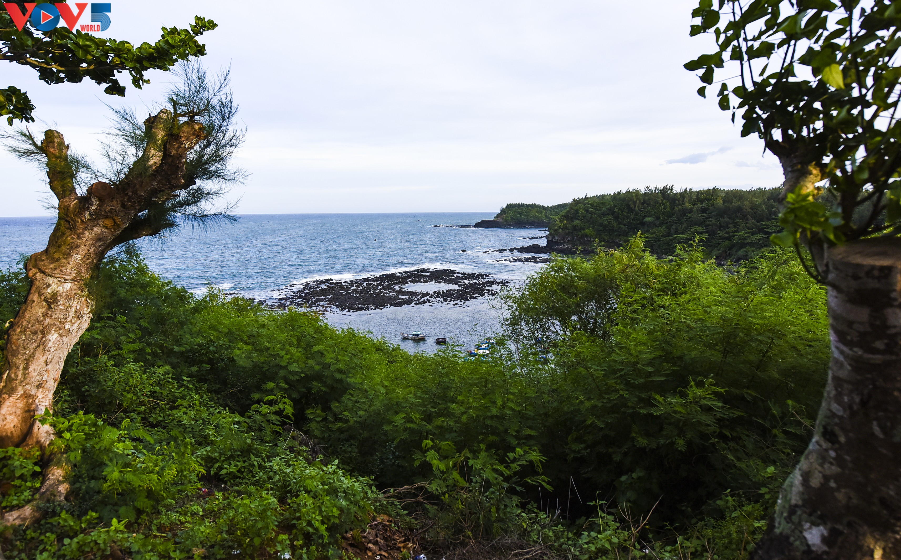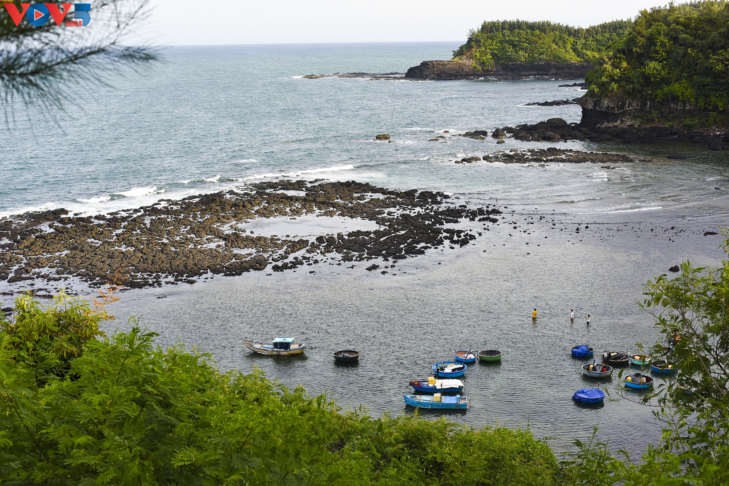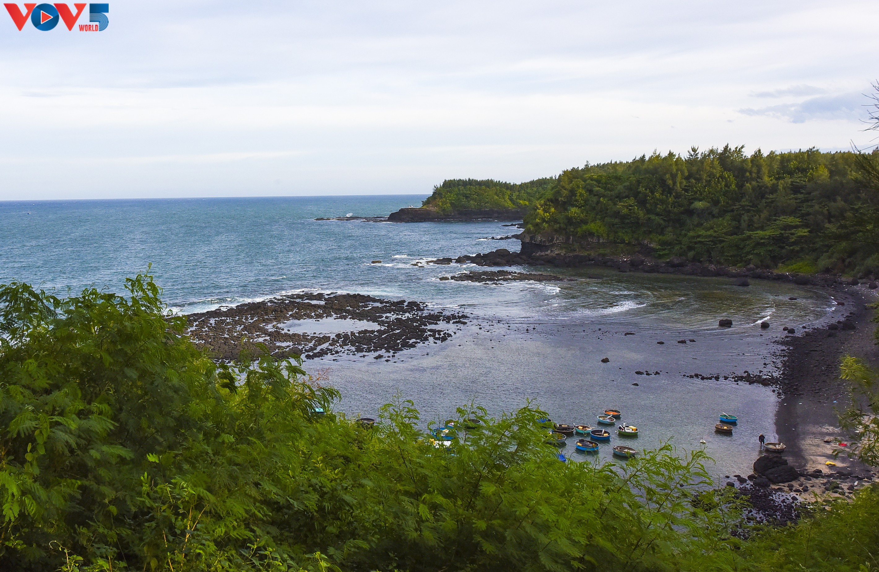 Ngắm từ trạm hải đăng Ba Làng An, miệng núi lửa cổ đại đang dần phát lộ khi thủy triều rút.