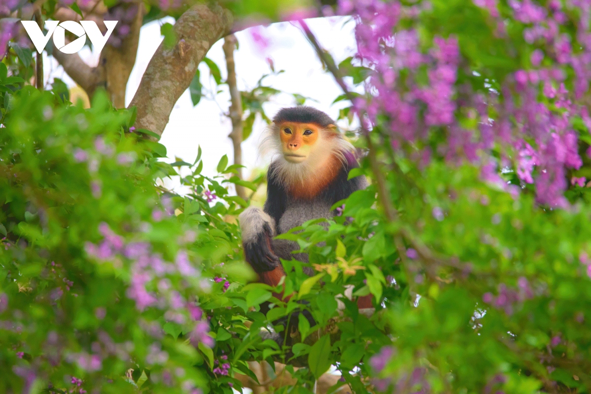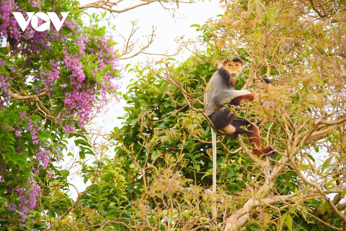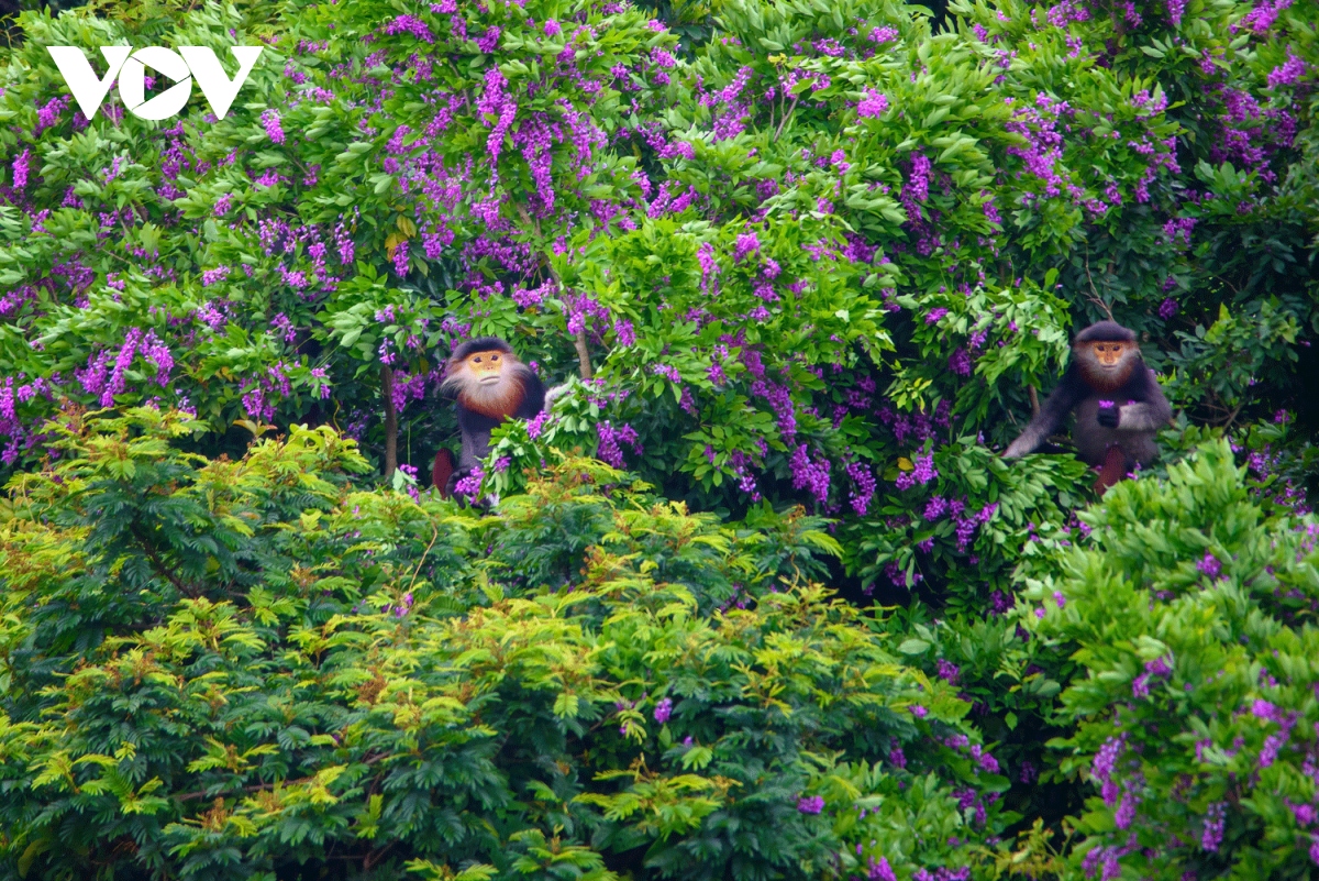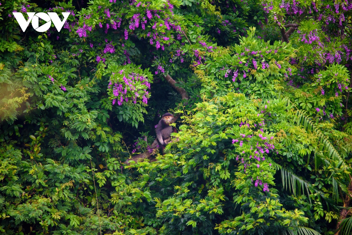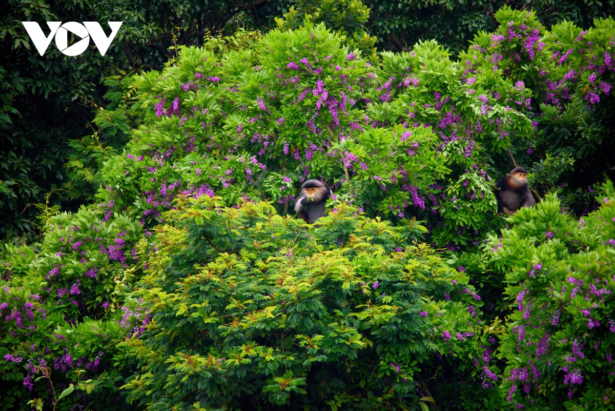 Vẻ đẹp của loài hoa tím kết hợp với loài voọc chà vá chân nâu ở bán đảo Sơn Trà đã tạo nên bức tranh thiên nhiên độc đáo, ít nơi nào có được.