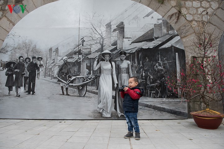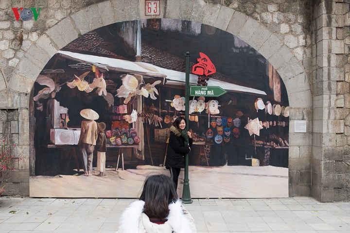 | Đoạn phố Bích họa Phùng Hưng đã trở thành phố đi bộ nối liền với chợ hoa Tết Hàng Lược. |