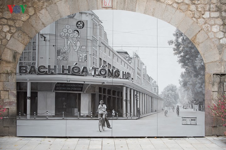 | Bức bích hoạ về chuyến tàu điện, hình ảnh gắn liền với Hà Nội xưa được thực hiện bởi các hoạ sĩ Hàn Quốc. |