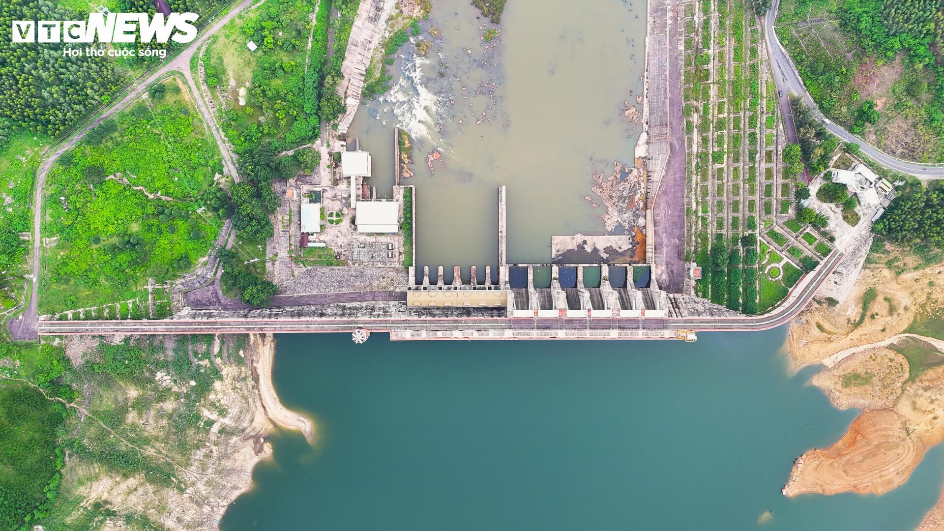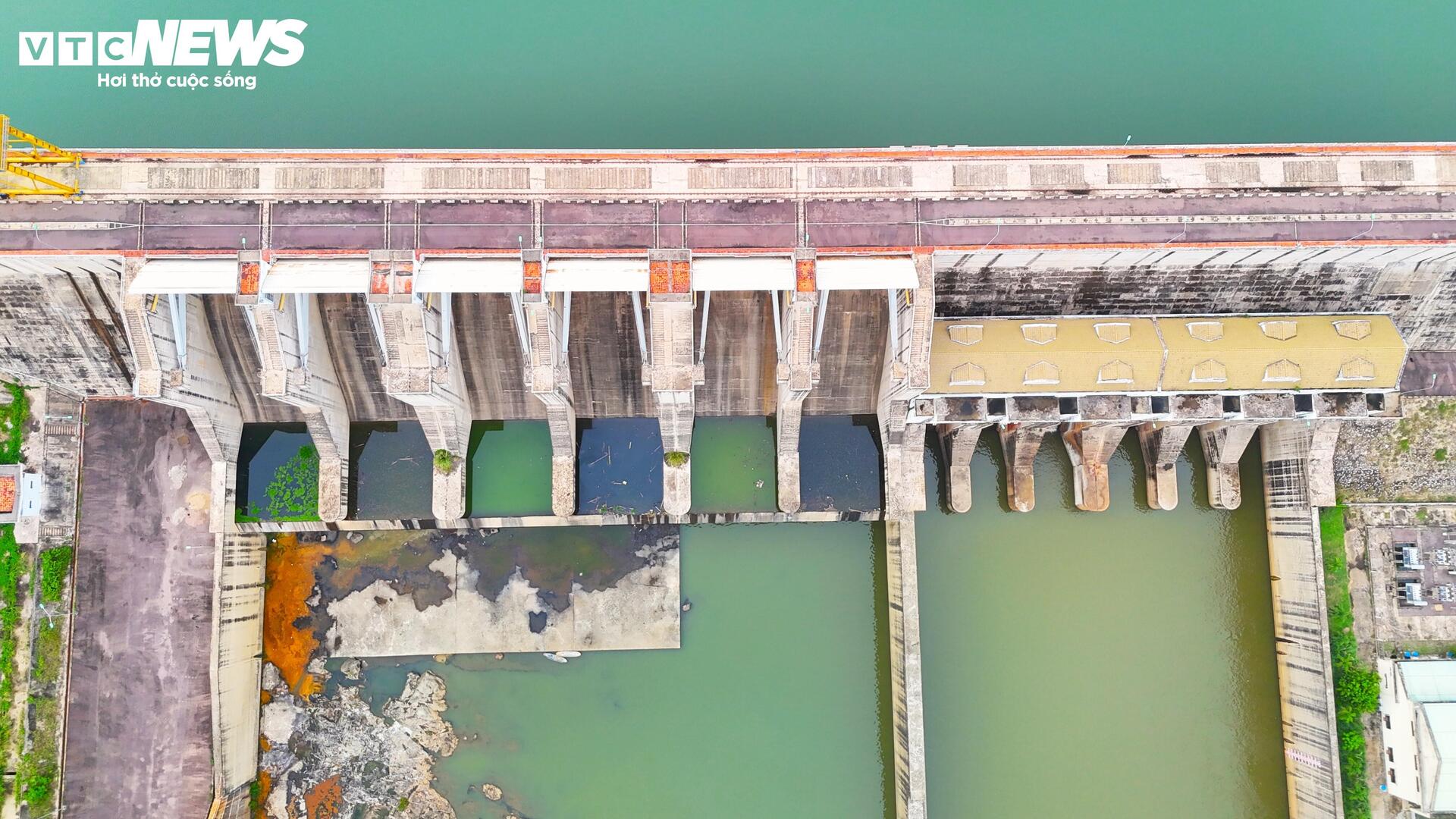 | Đập có chiều dài 590m, bao gồm 20 cửa xả sâu, mỗi cửa rộng 15m bằng thép, đáy cửa ở cao trình 14m ngang với đáy sông chỉ vận hành vào mùa mưa để xả lũ. Phần đập tràn tự do 2 bên dạng tràn Labyrinth với tổng chiều rộng 237m, cao trình ngưỡng tràn 18m. Tất cả đều vận hành bằng hệ thống điện. |